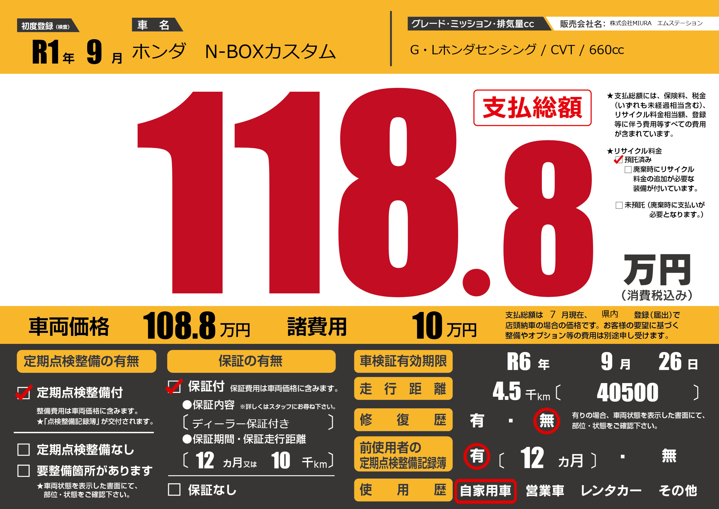 | 車検制限 | R6年 9月 26日 | ||