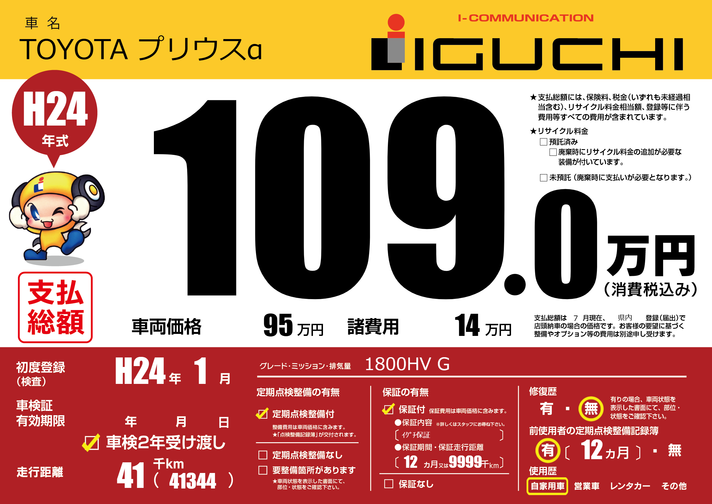 保証付き 保証内容(イグチ保証) 12ヶ月または9999千km |