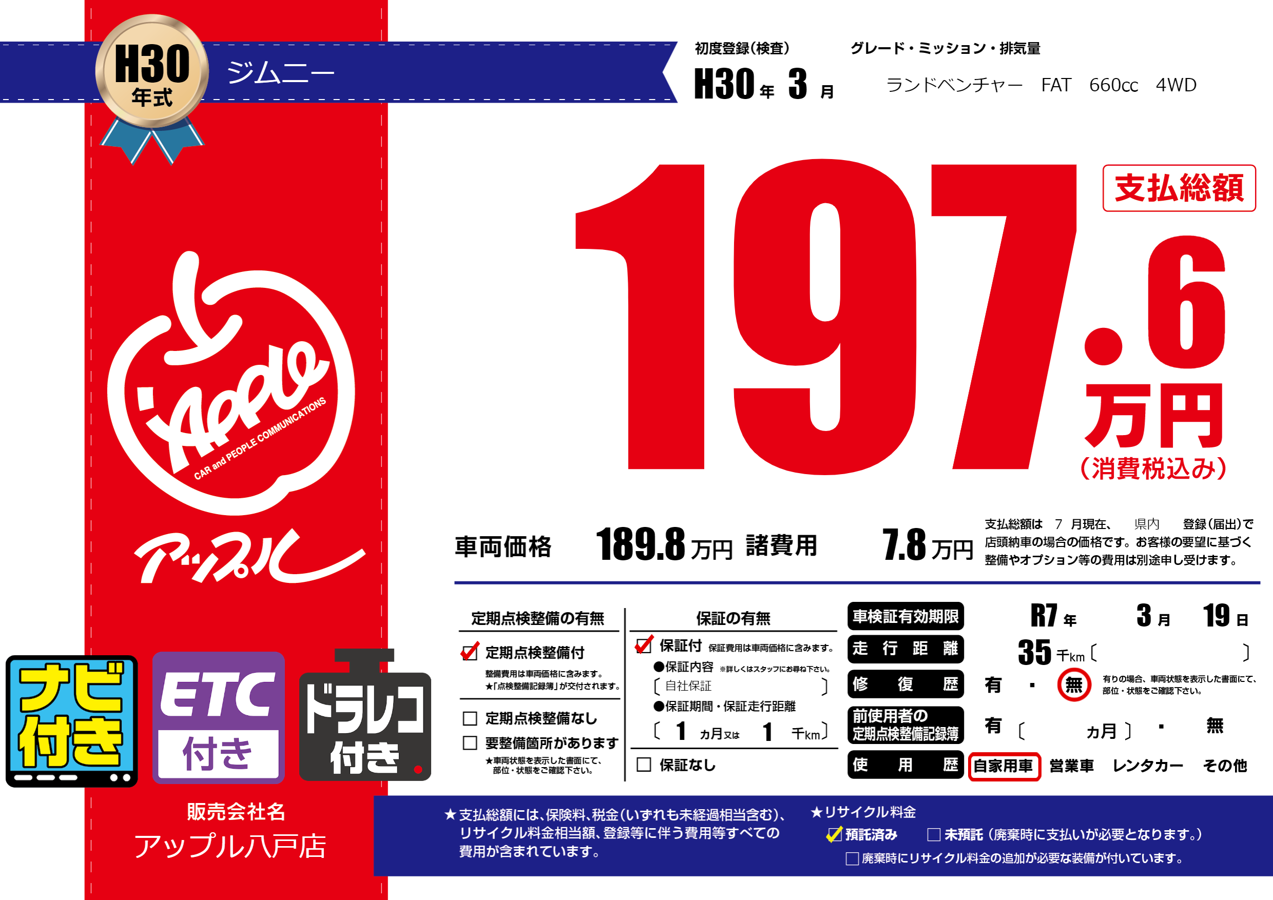 なし | 車検制限 | R7年3月19月 |