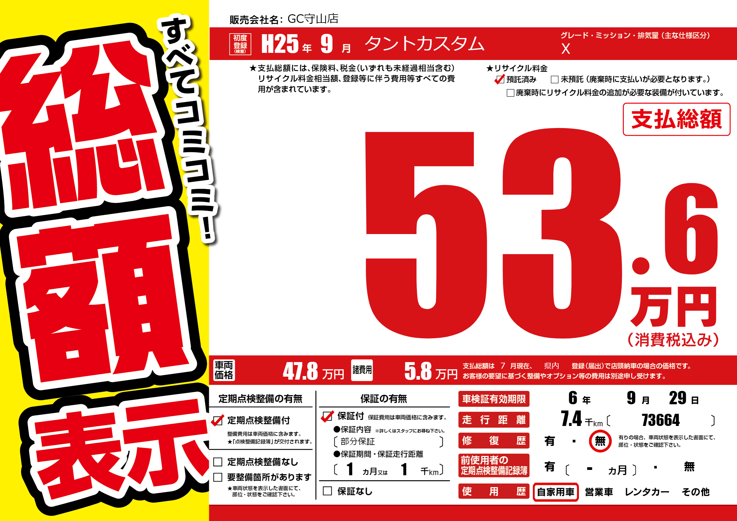 | 車検制限 | 6年 9月 29日 | ||