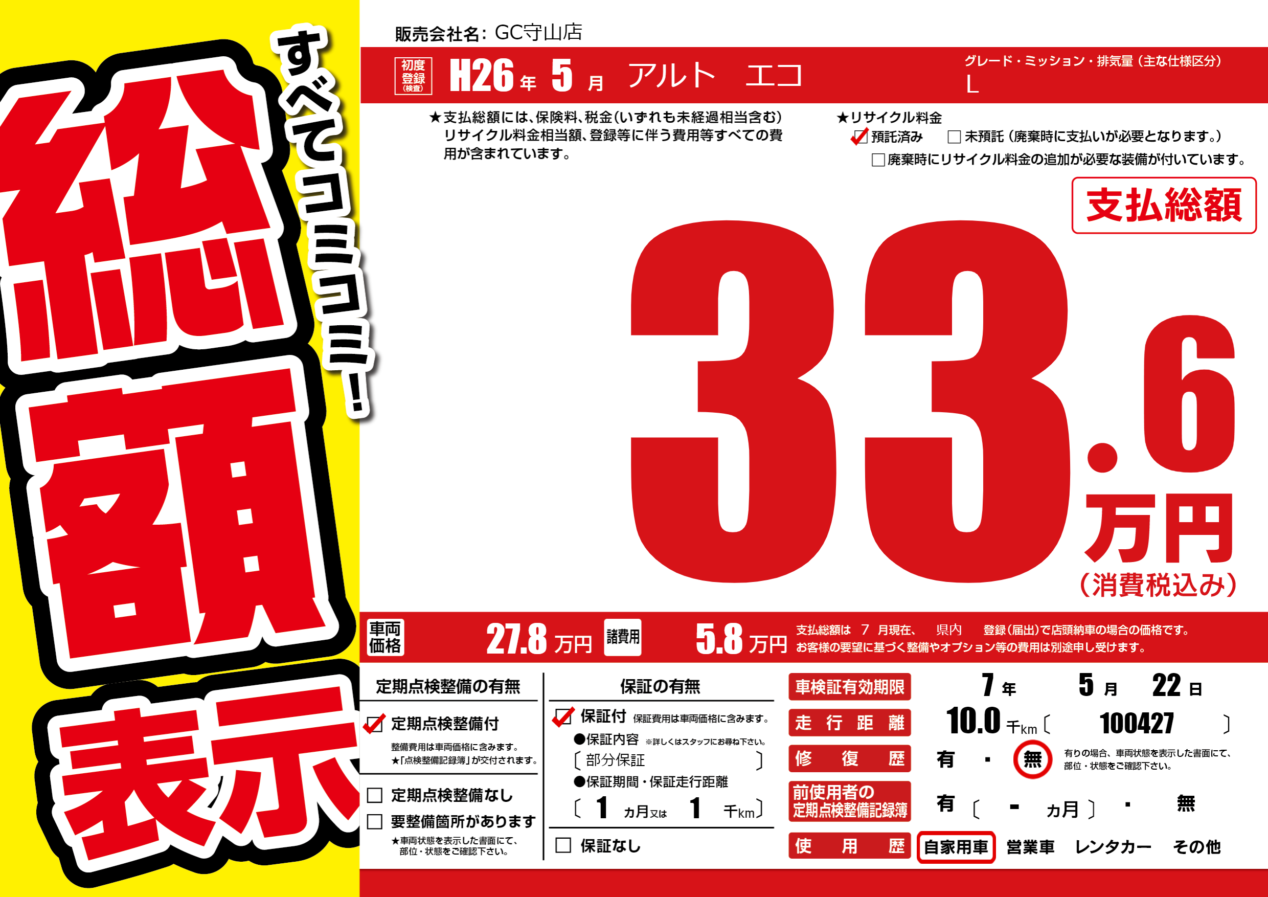 なし | 車検制限 | 7年5月22月 |