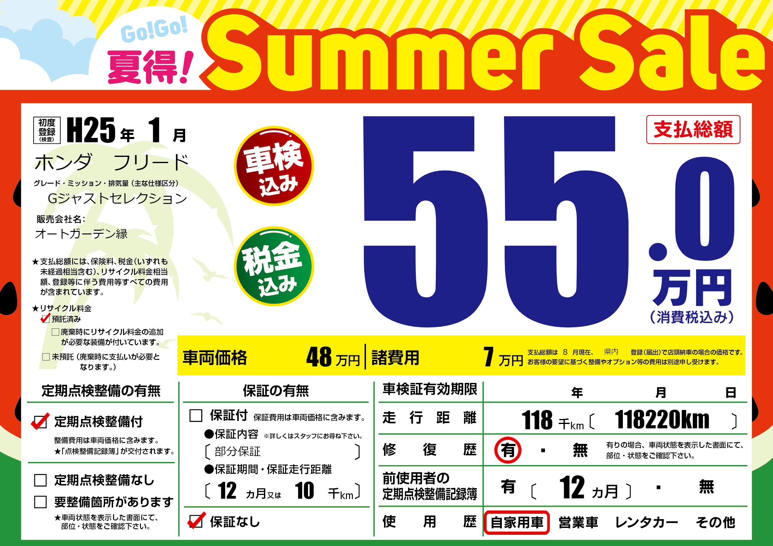 | 定期点検整備 | 定期点検整備あり | ||