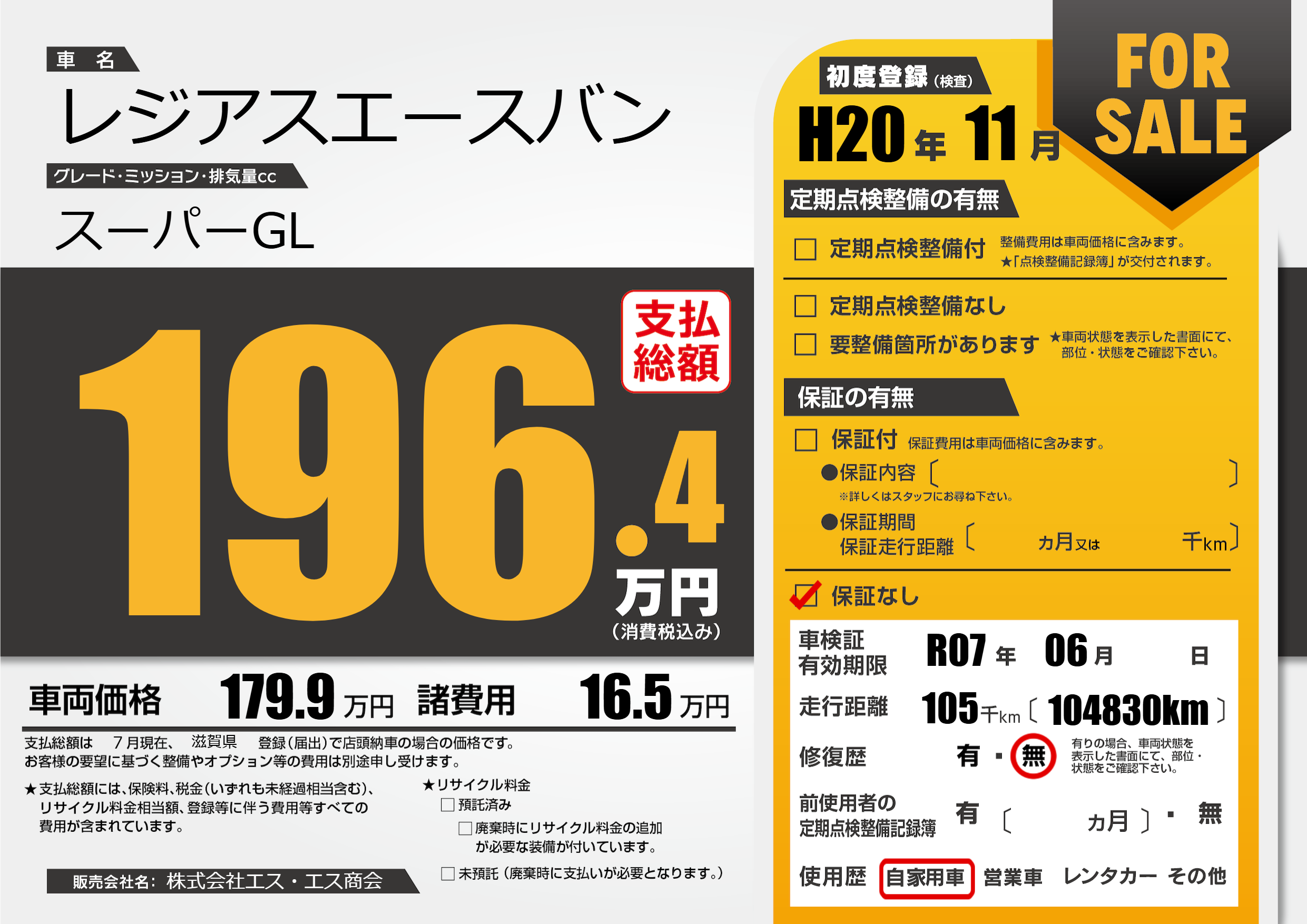 なし | 車検制限 | R07年06月---月 |