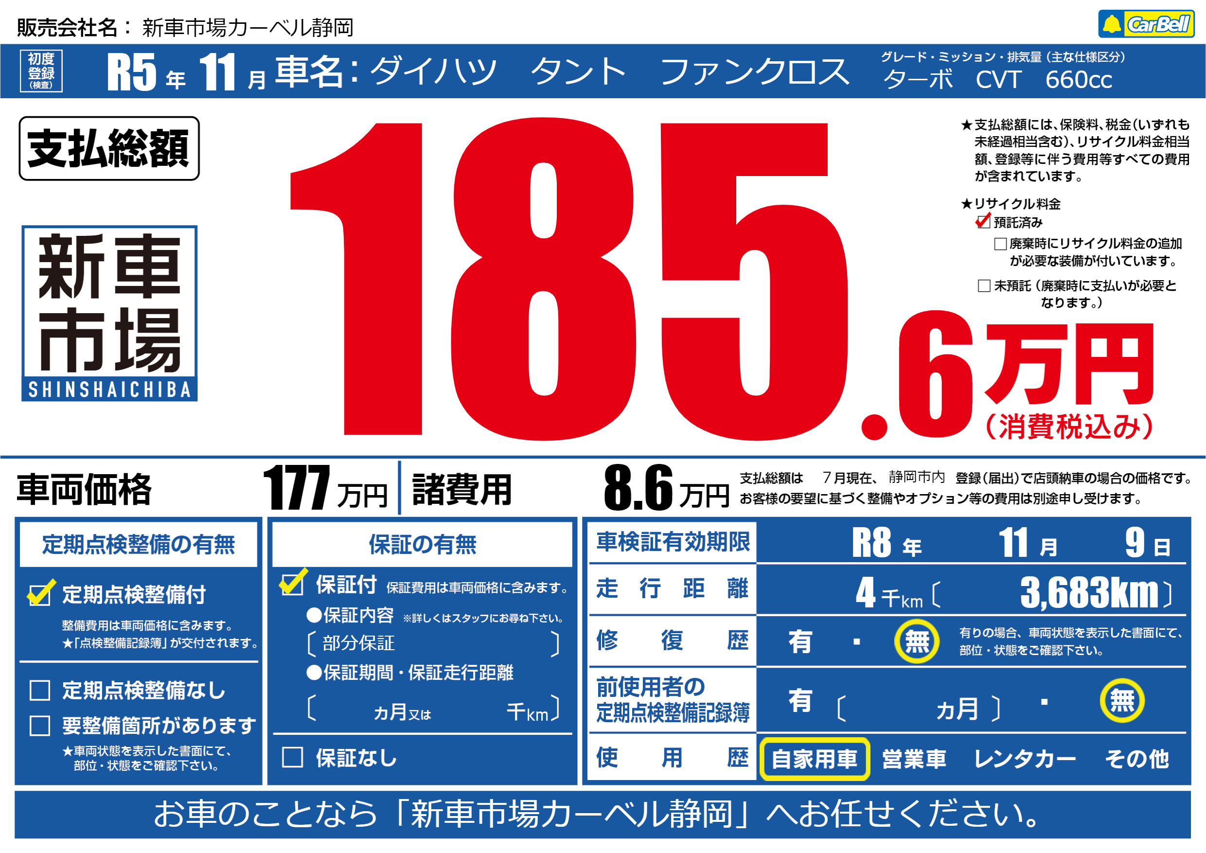 | 走行キロ | 0.4万km | 初年度登録 | R5年11月 |