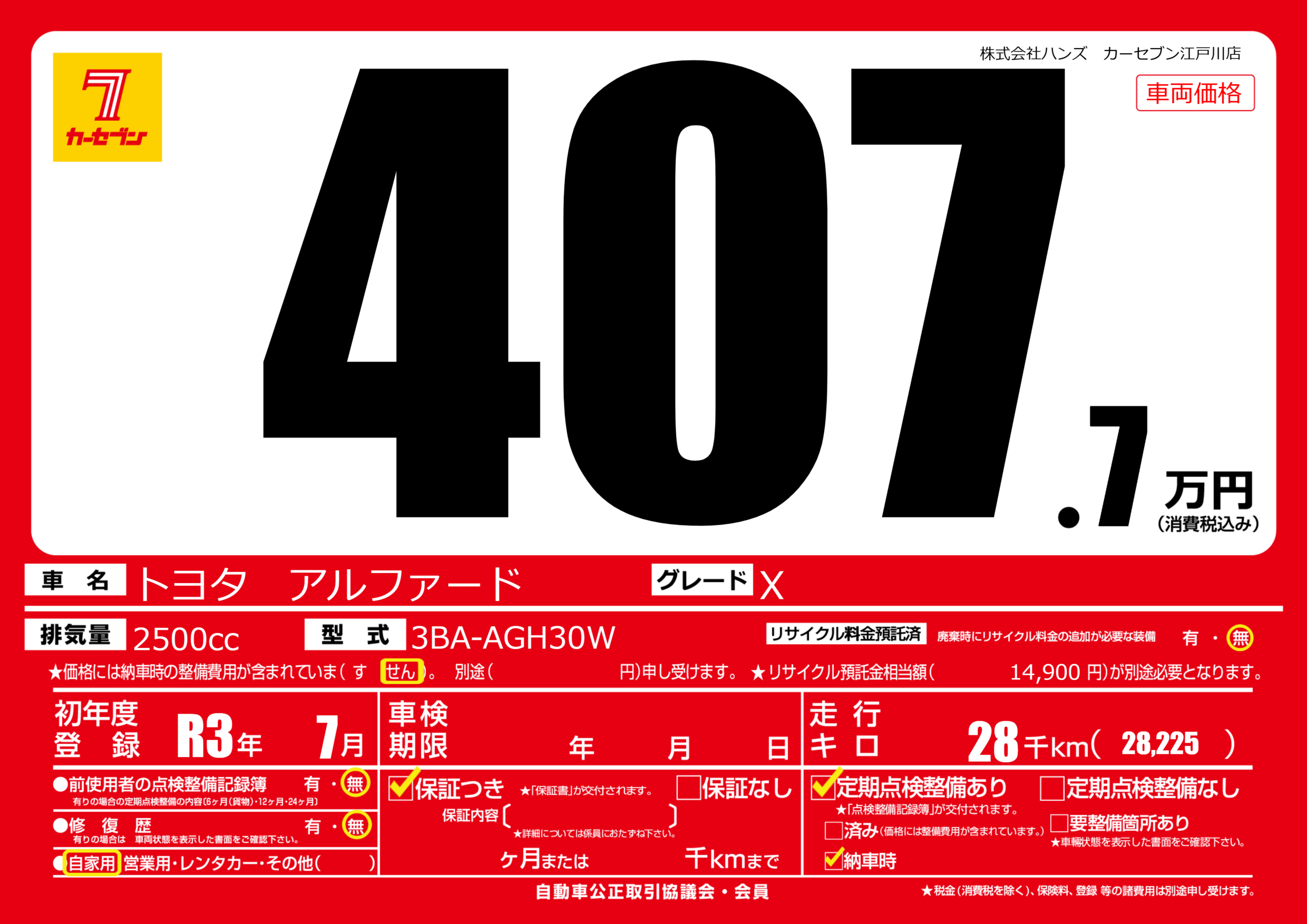 | 走行キロ | 2.8万km | 初年度登録 | R3年7月 |