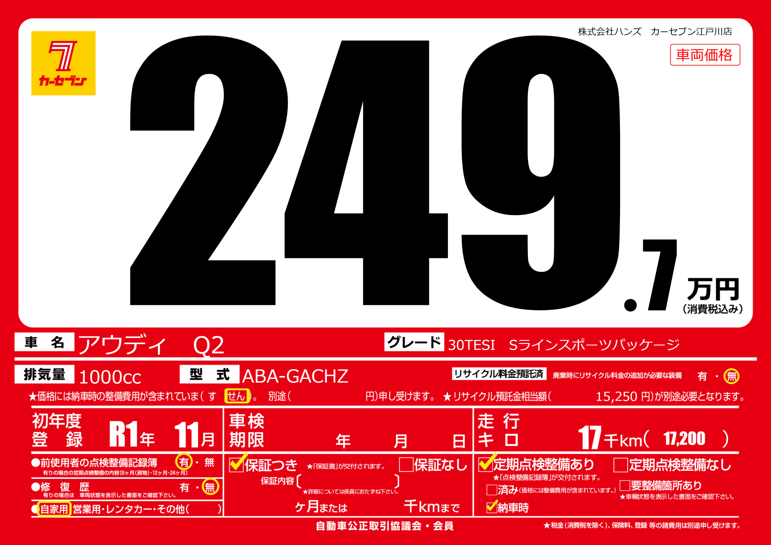 | 車名 | アウディ Q2 | グレード ミッション 排気量 |