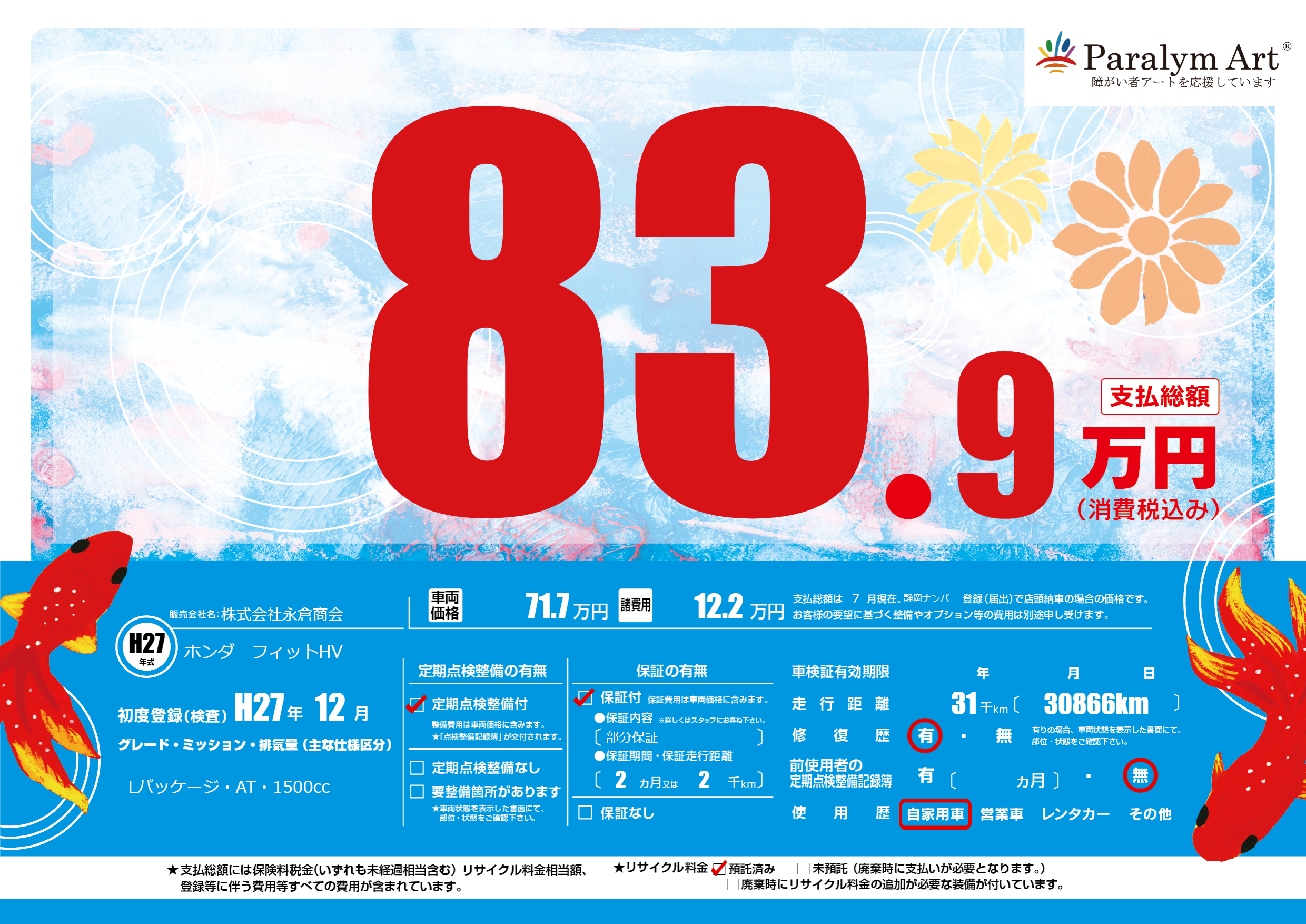| 走行キロ | 3.1万km | 初年度登録 | H27年12月 |