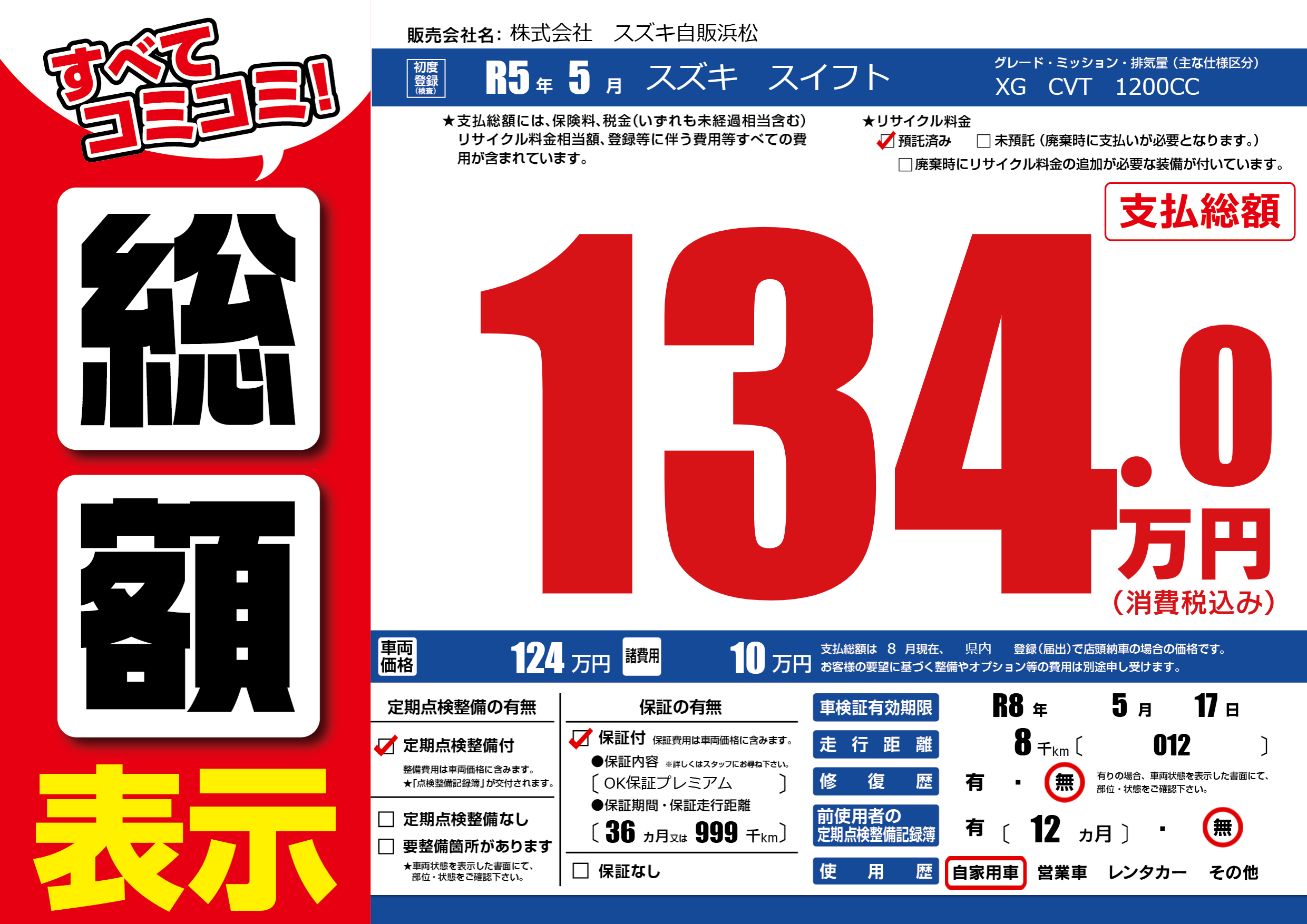 なし | 車検制限 | R8年5月17月 |