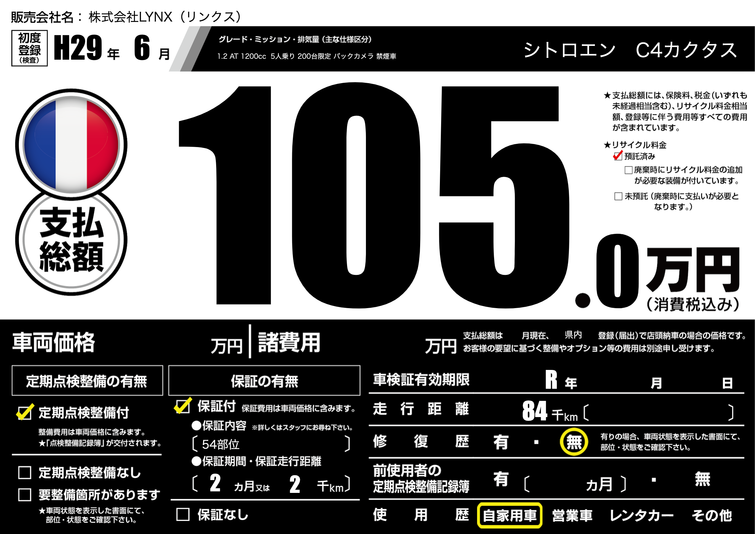 なし | 車検制限 | R年---月---月 |