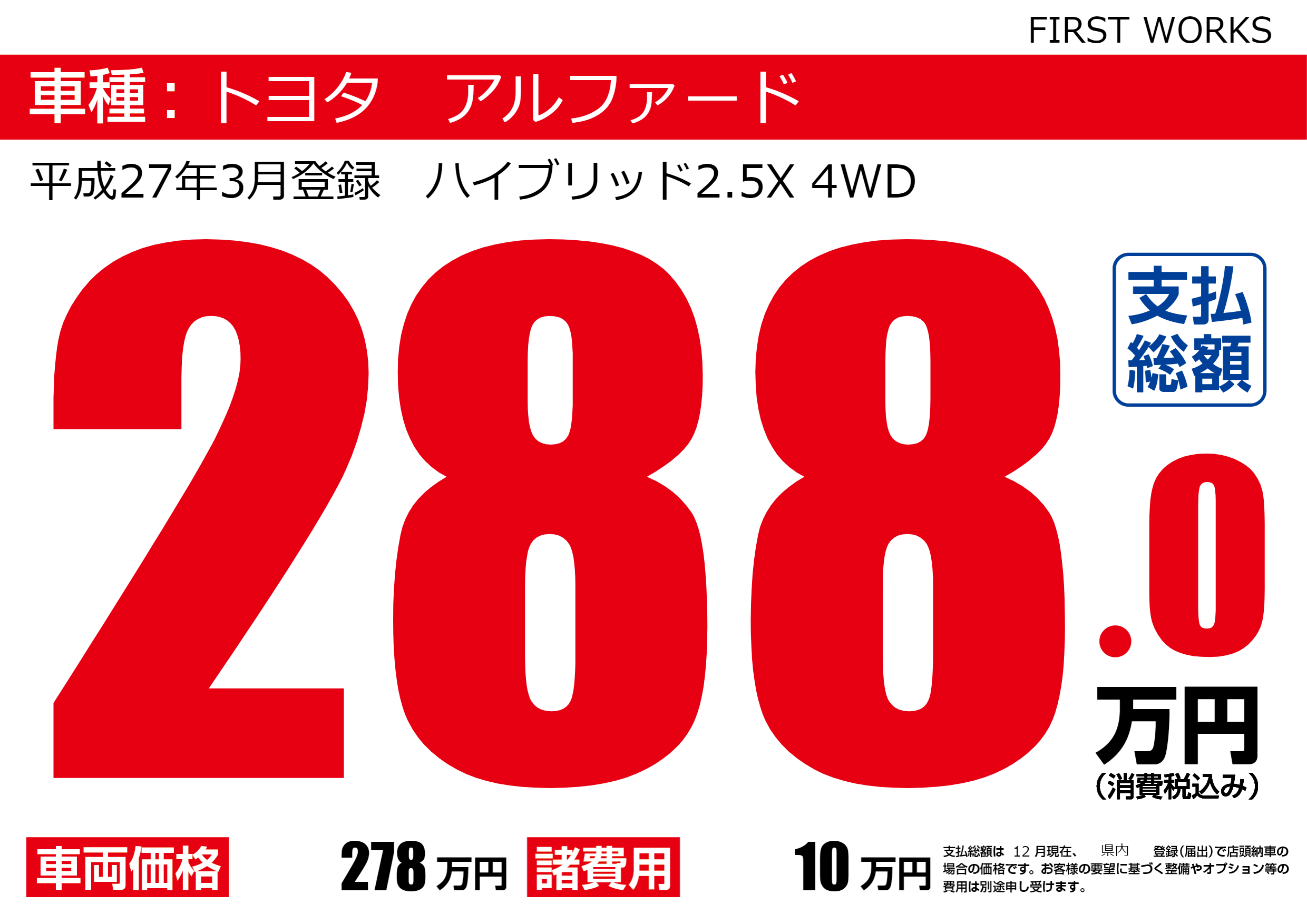 | 車名 | トヨタ アルファード | グレード ミッション 排気量 |