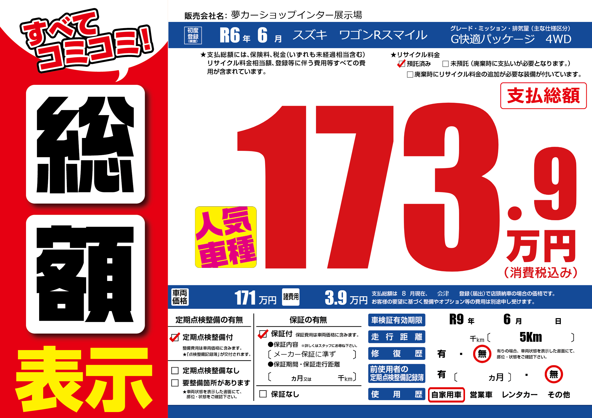 車検制限 R9年 6月 - 日