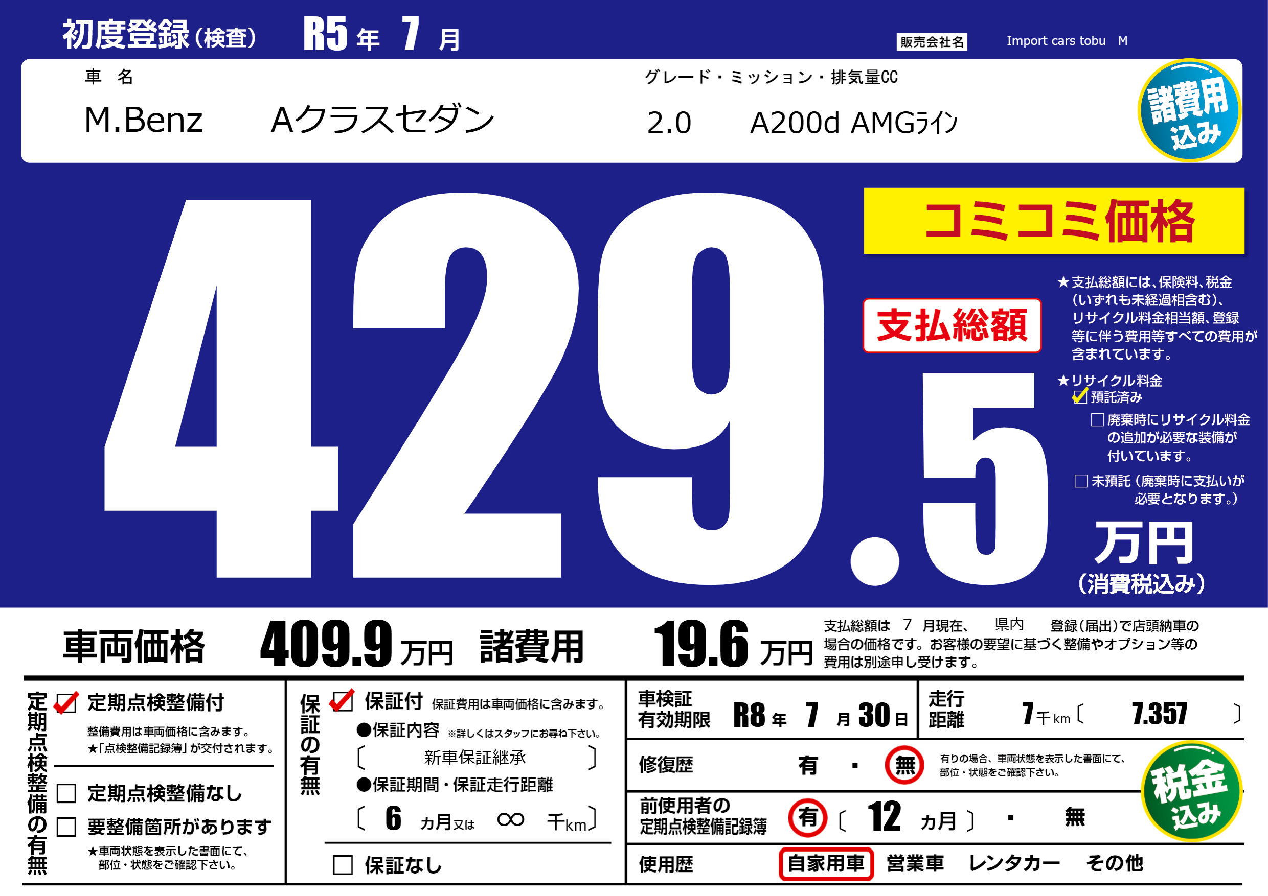 車検制限 R8年 7月 30日