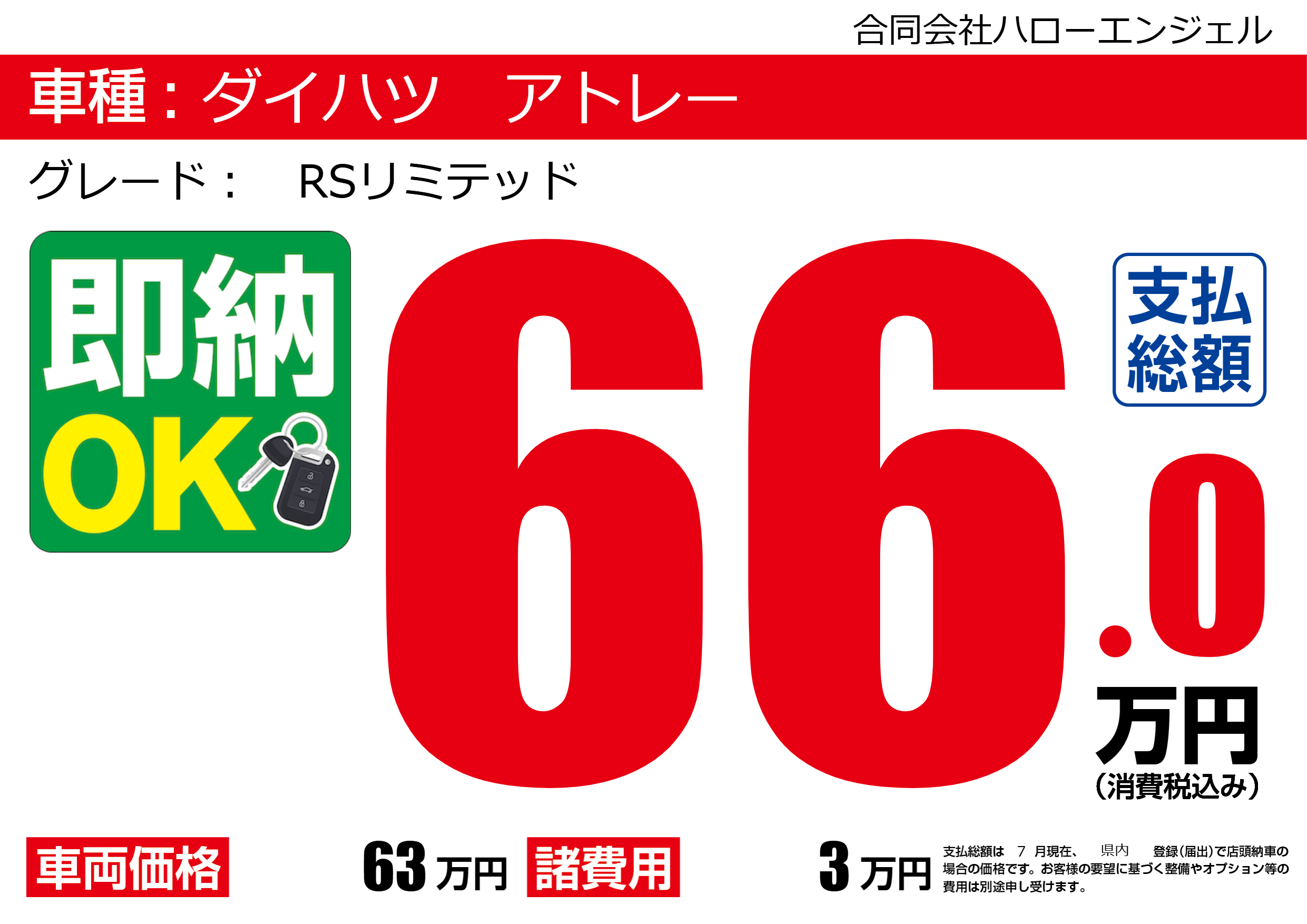| 車名 | ダイハツ アトレー | グレード ミッション 排気量 |