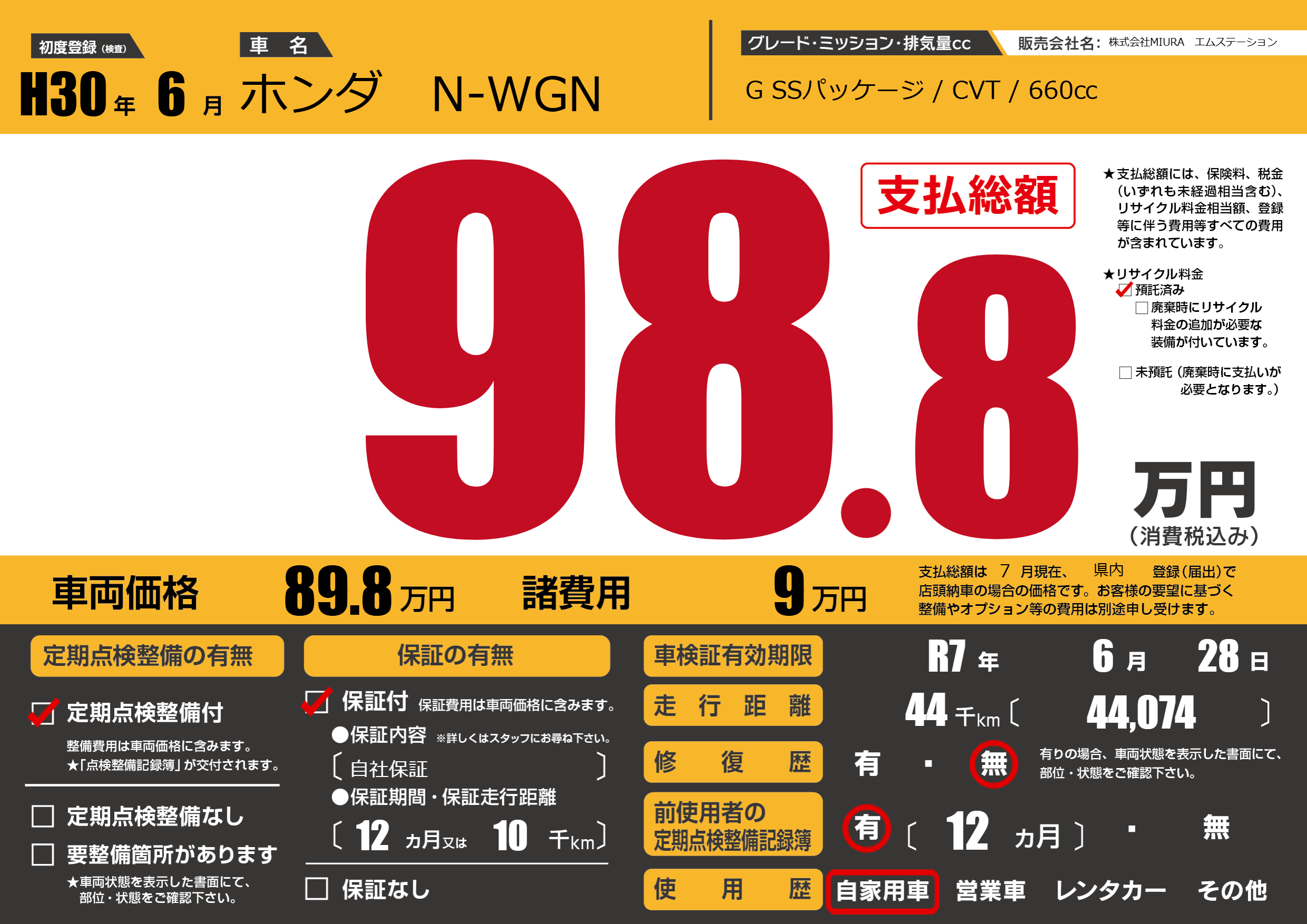 | 初年度登録 | H30年6月 | ||