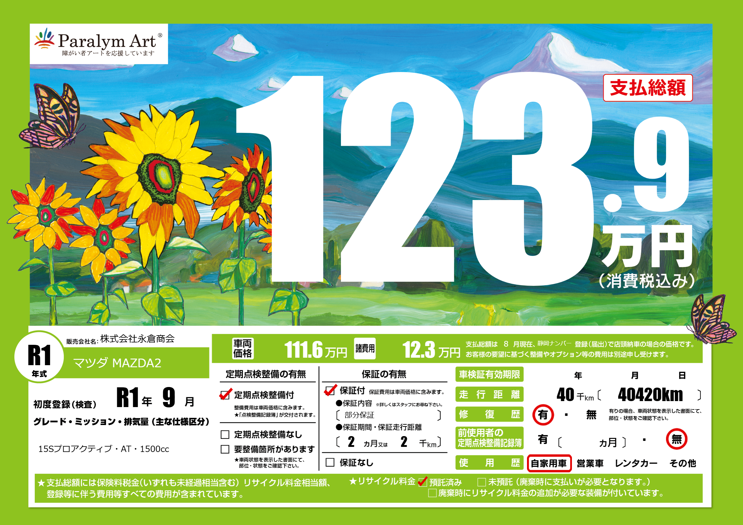| 車名 | マツダ MAZDA2 | グレード ミッション 排気量 |
