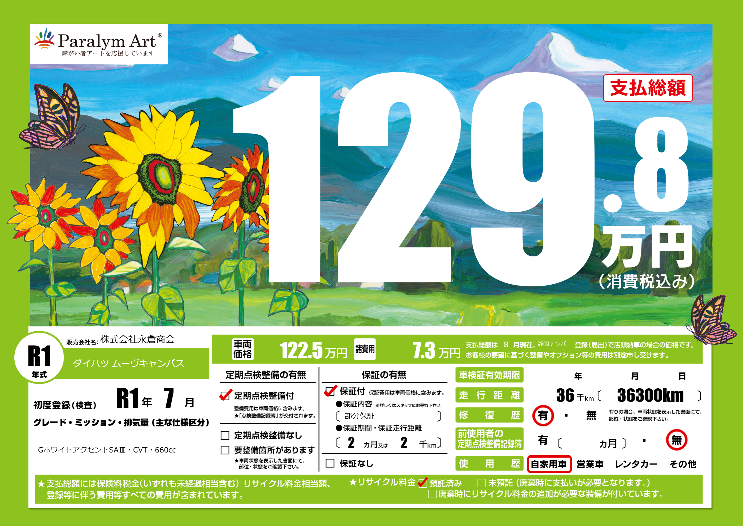 | 走行キロ | 3.6万km | 初年度登録 | R1年7月 |