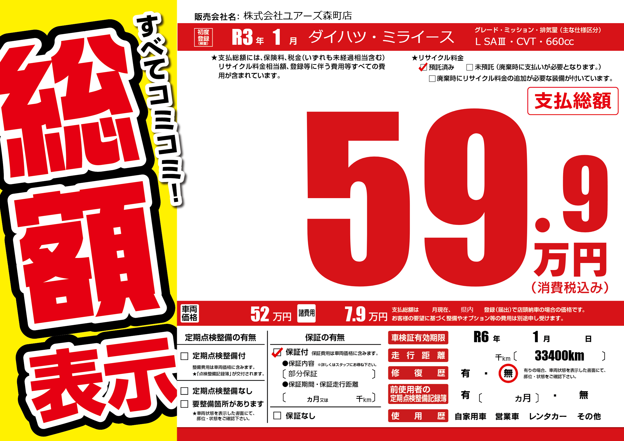 なし | 車検制限 | R6年1月---月 |