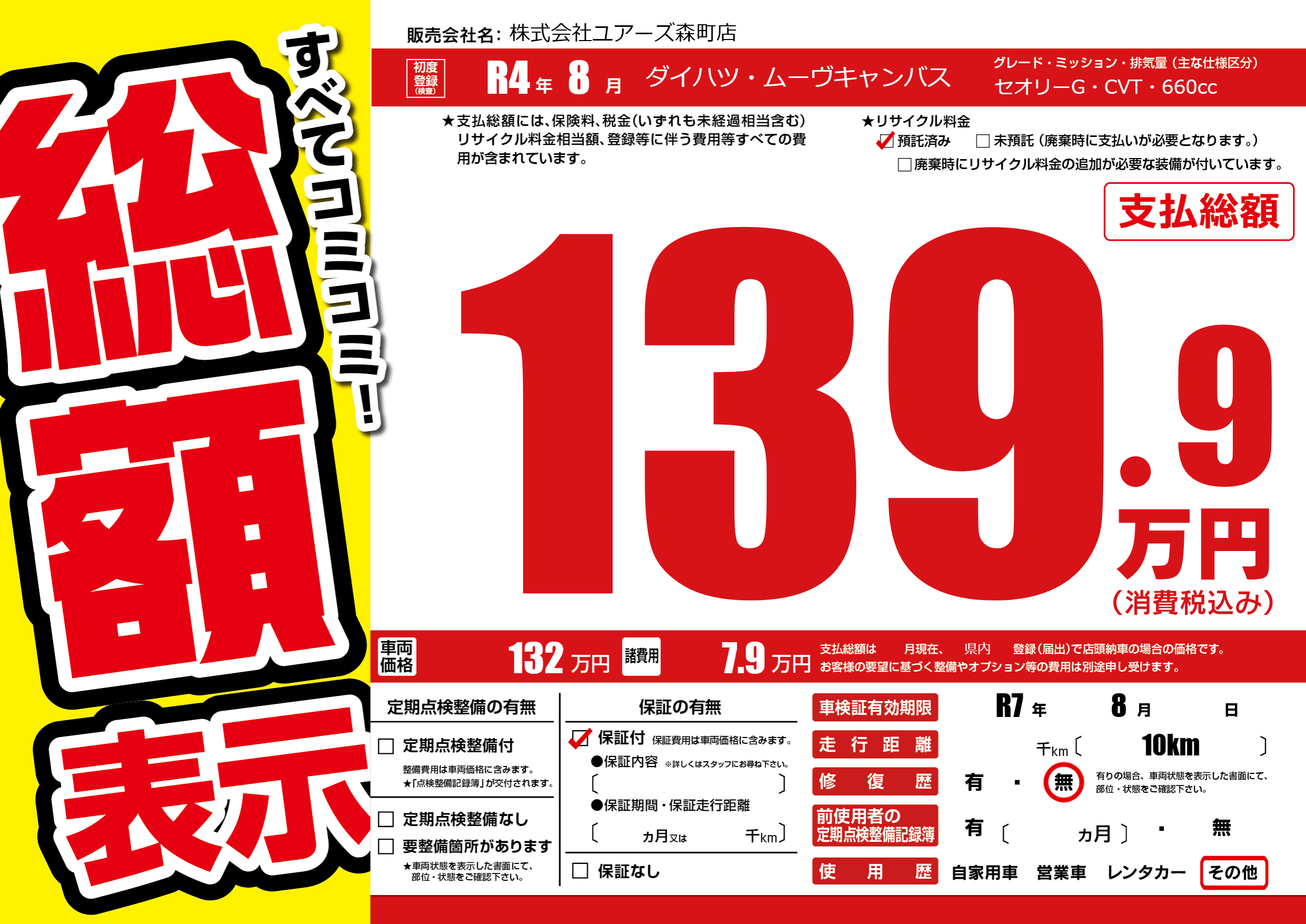 なし | 車検制限 | R7年8月---月 |