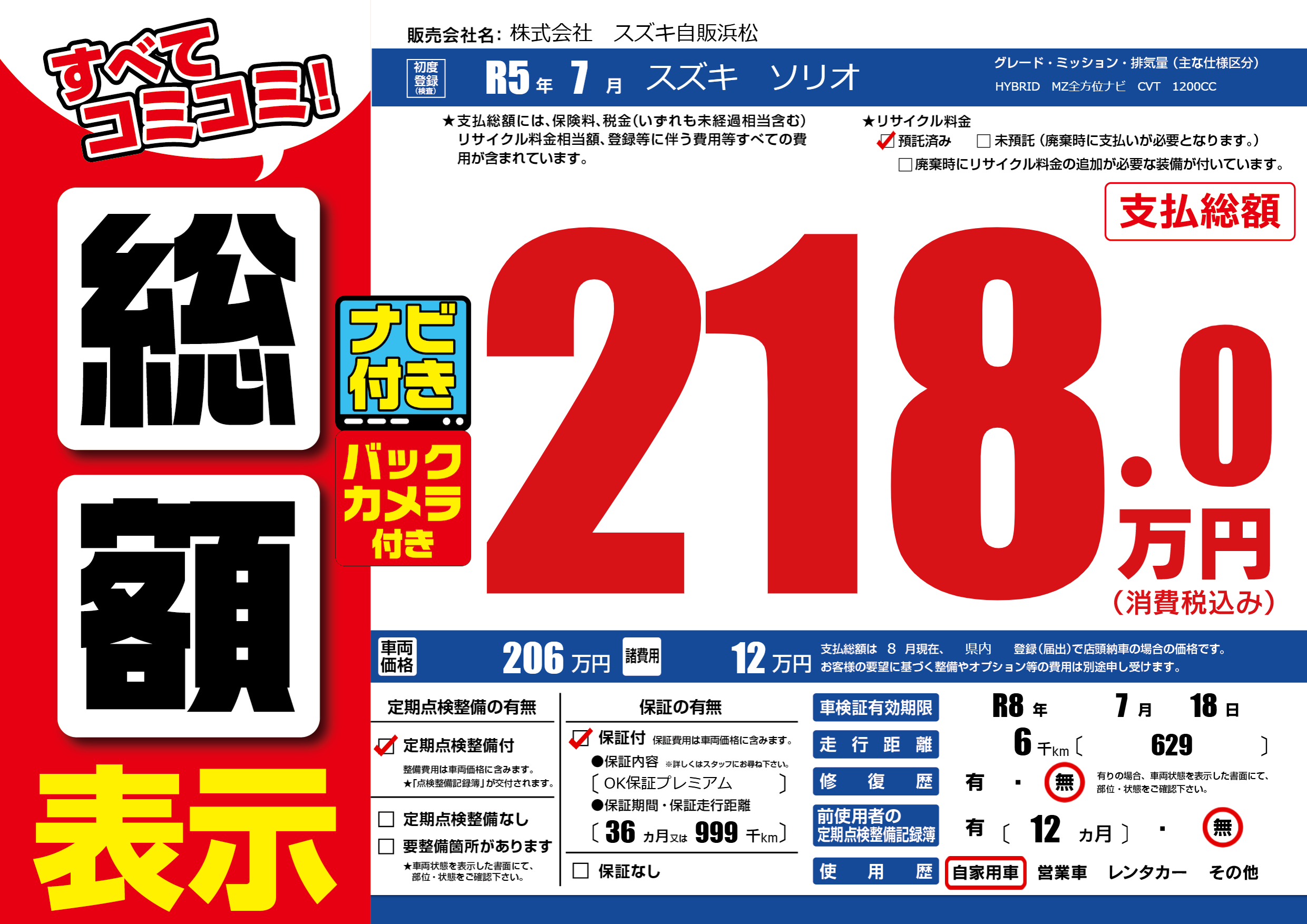 | 車名 | スズキ ソリオ | グレード ミッション 排気量 |
