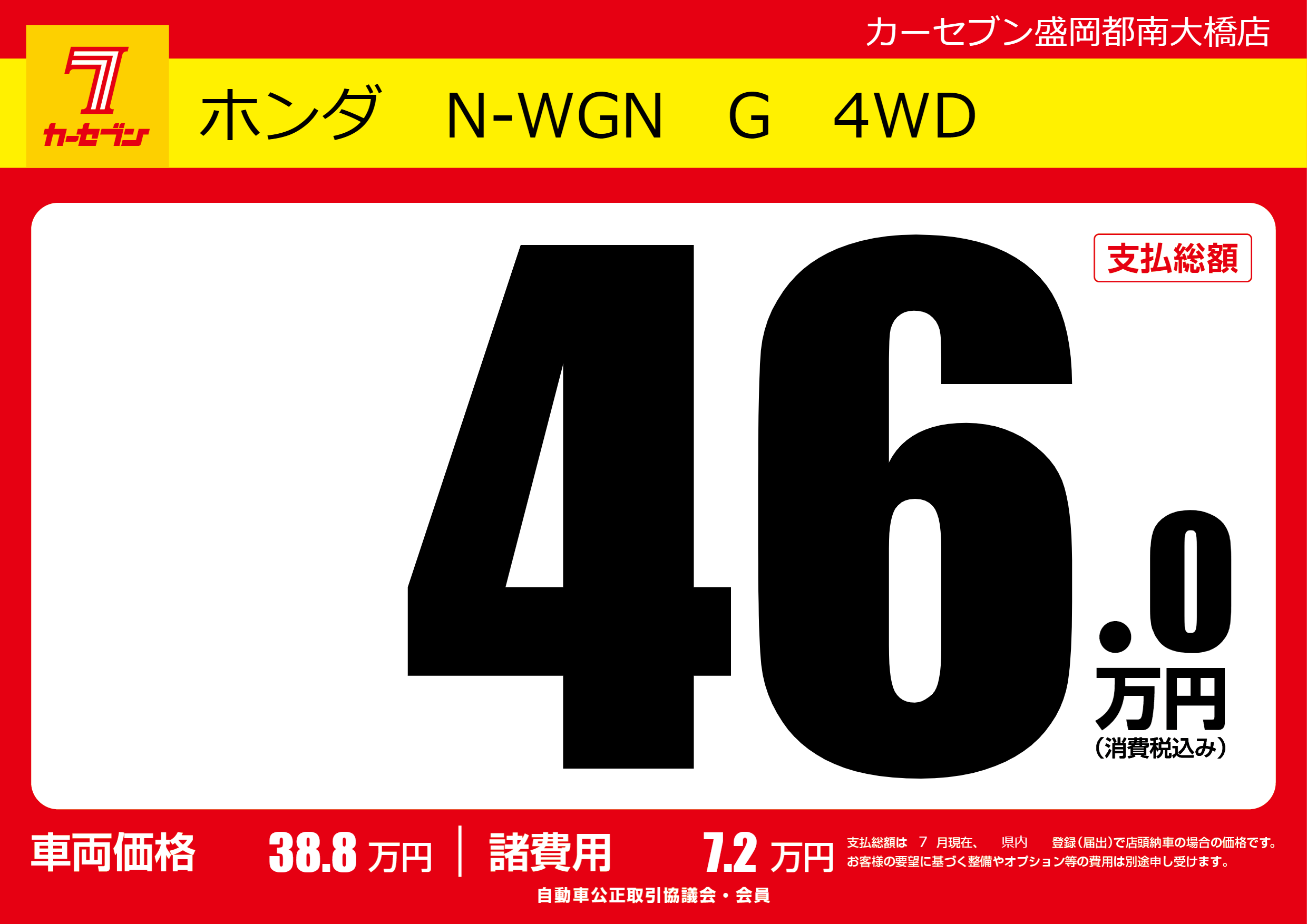 | 車名 | ホンダ N-WGN G 4WD | グレード ミッション 排気量 |