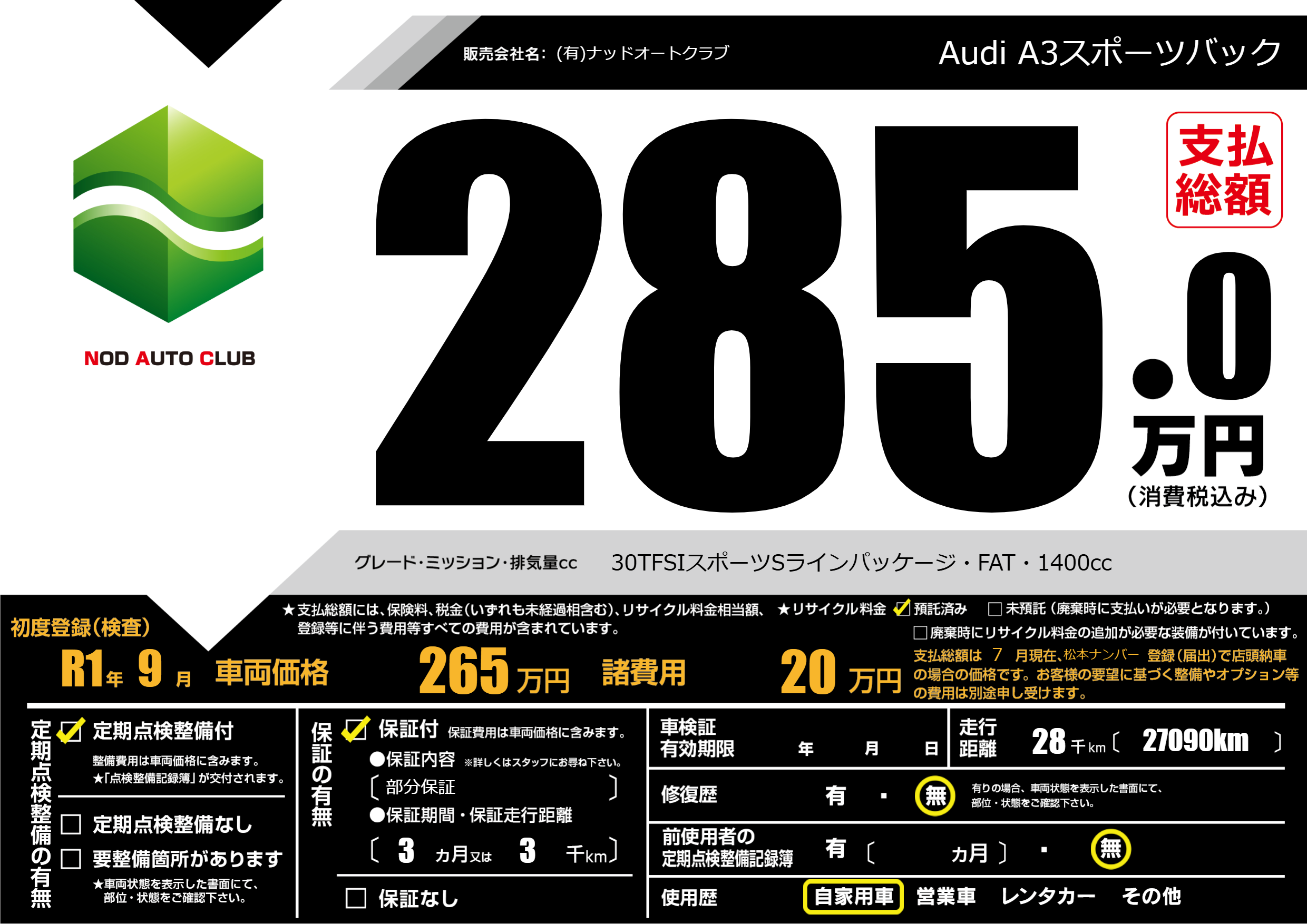 30TFSIスポーツSラインパッケージ・FAT・1400cc |