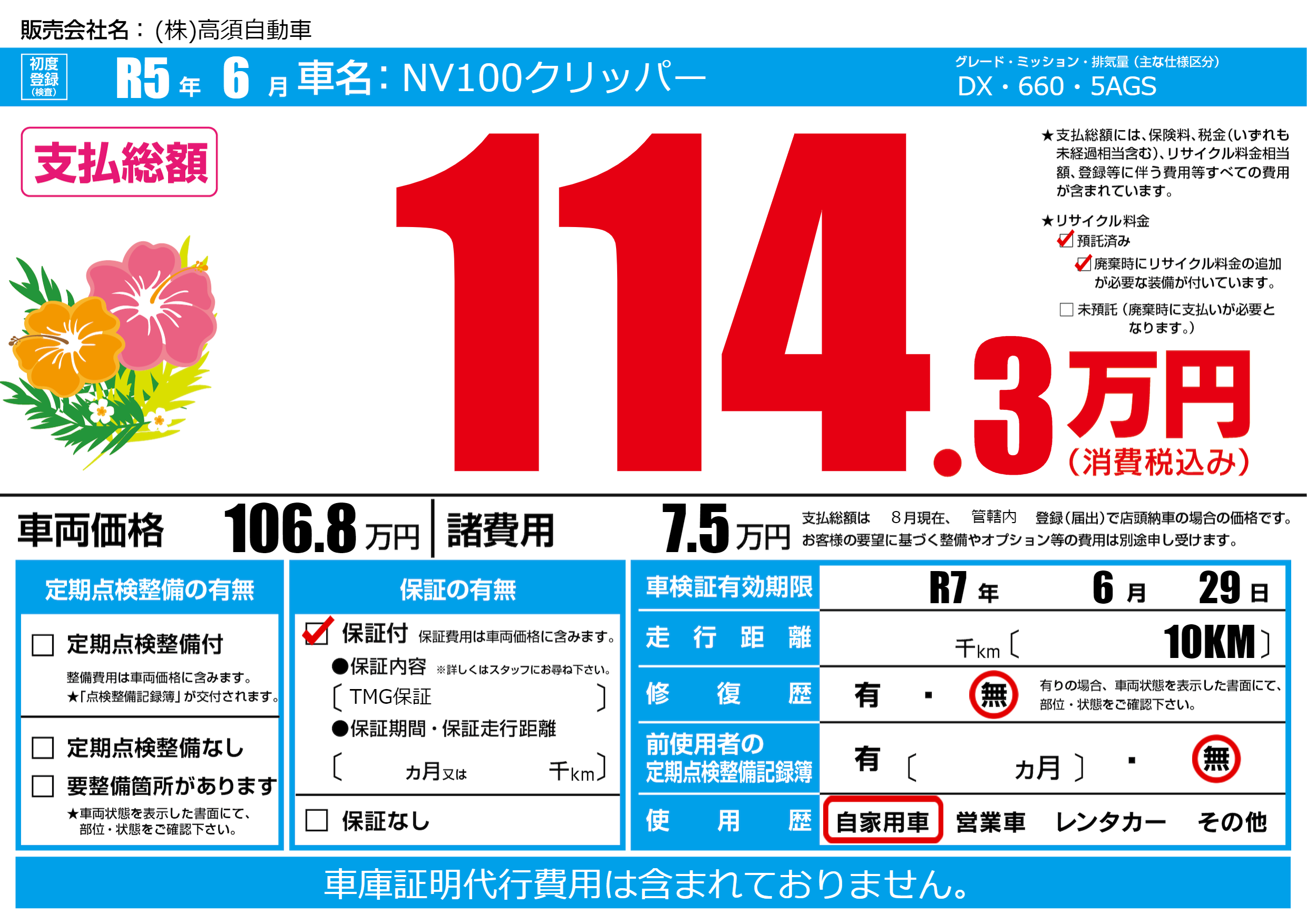 | 走行キロ | - | 初年度登録 | R5年6月 |