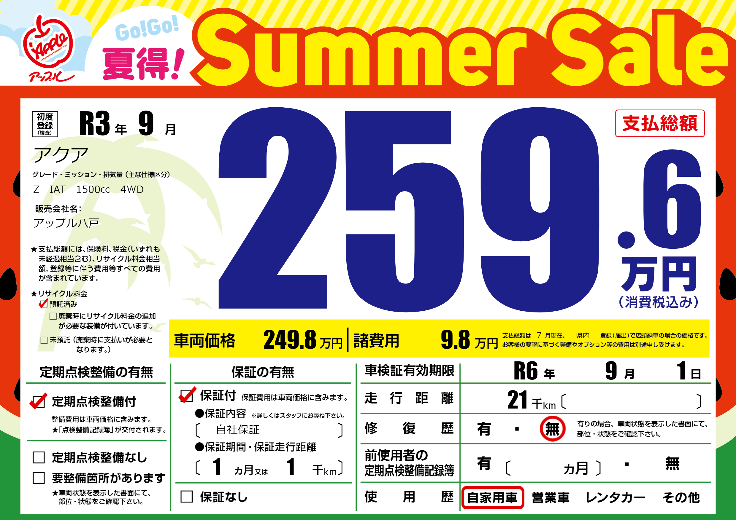 | 走行キロ | 2.1万km | 初年度登録 | R3年9月 |