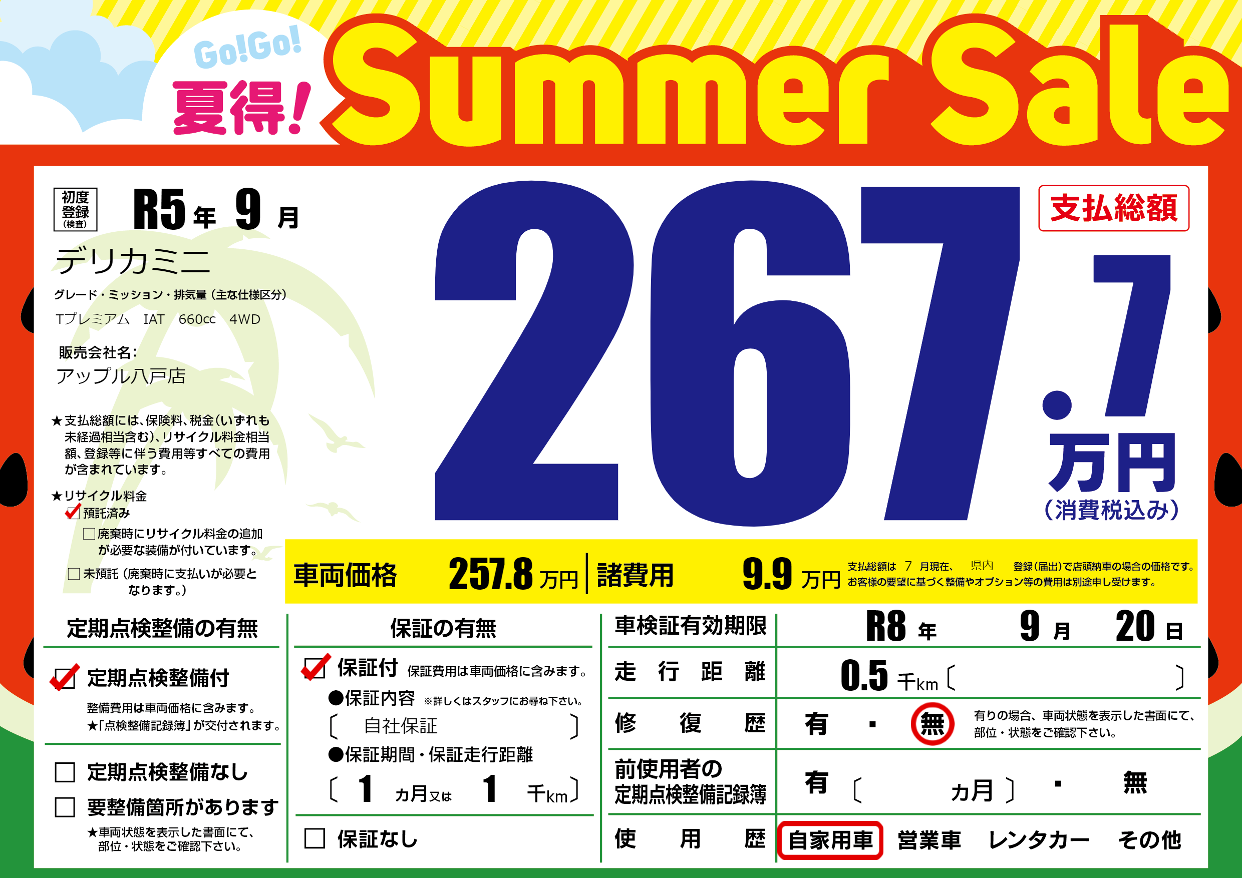 | 走行キロ | - | 初年度登録 | R5年9月 |