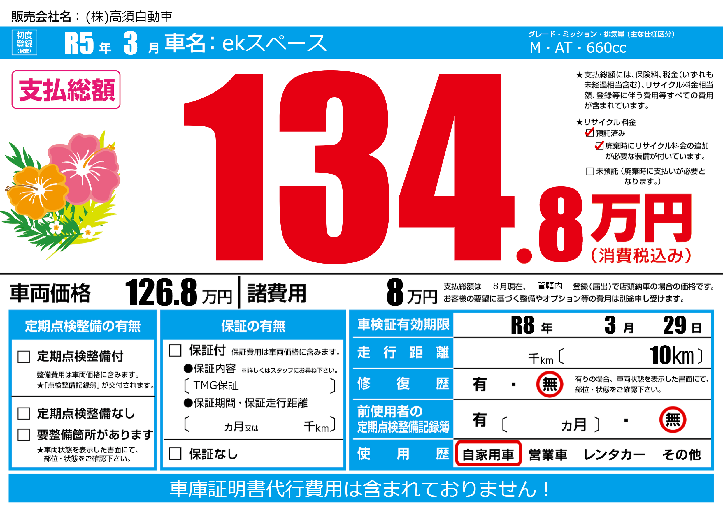 | 車名 | ekスペース | グレード ミッション 排気量 |