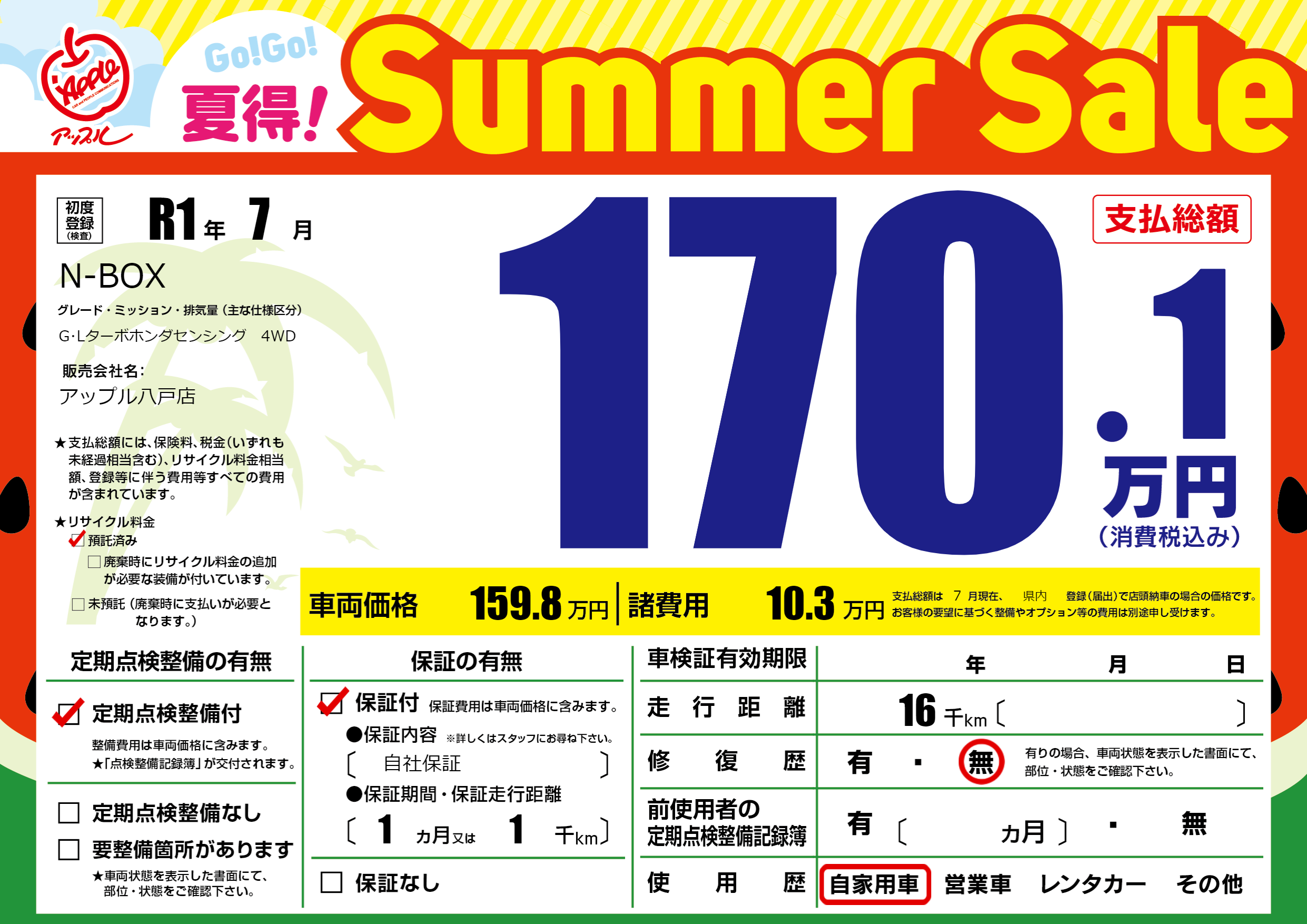 保証付き 保証内容( 自社保証) 1ヶ月または1千km |