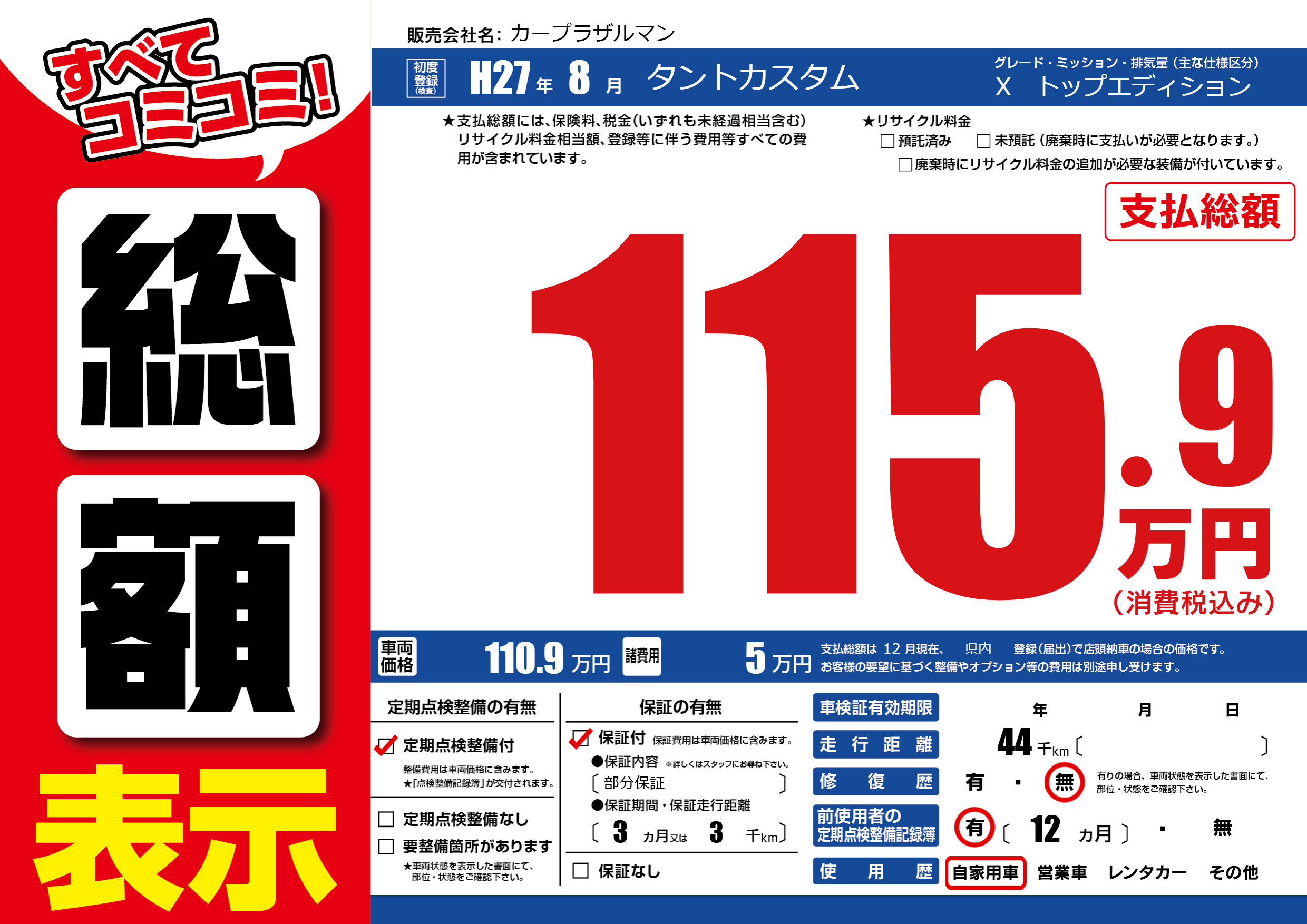 | 定期点検整備 | 定期点検整備あり | ||