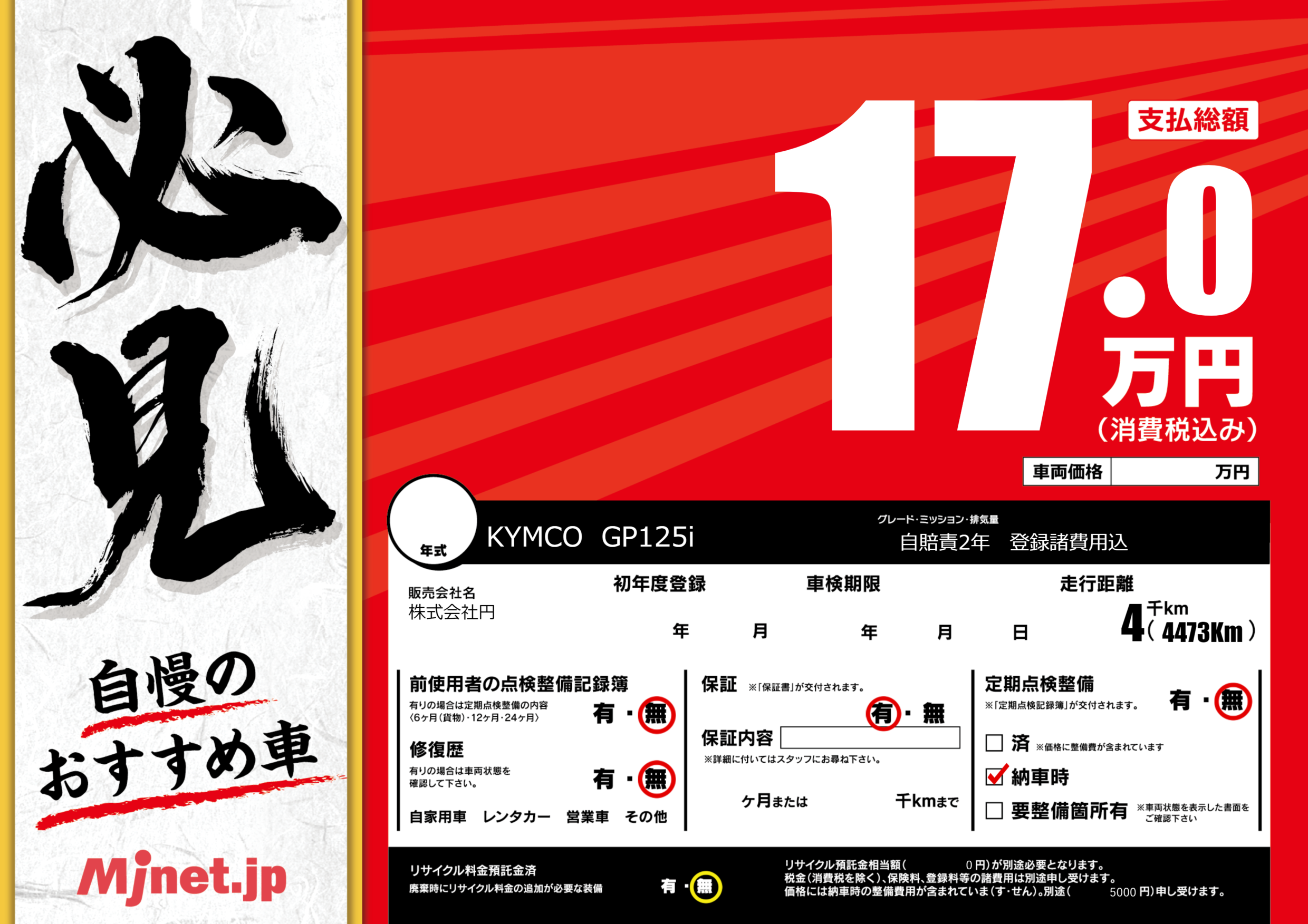 | 車名 | KYMCO GP125i | グレード ミッション 排気量 |