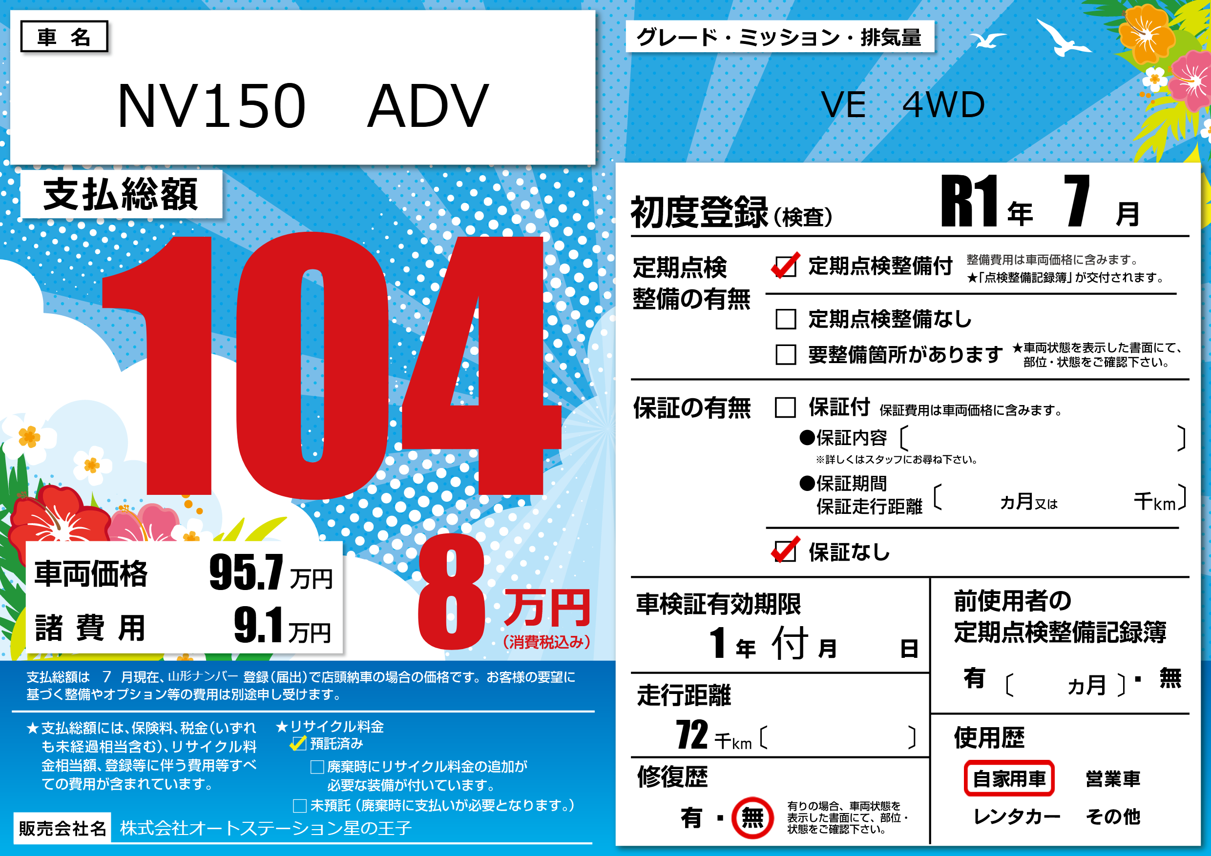 | 車名 | NV150 ADV | グレード ミッション 排気量 |