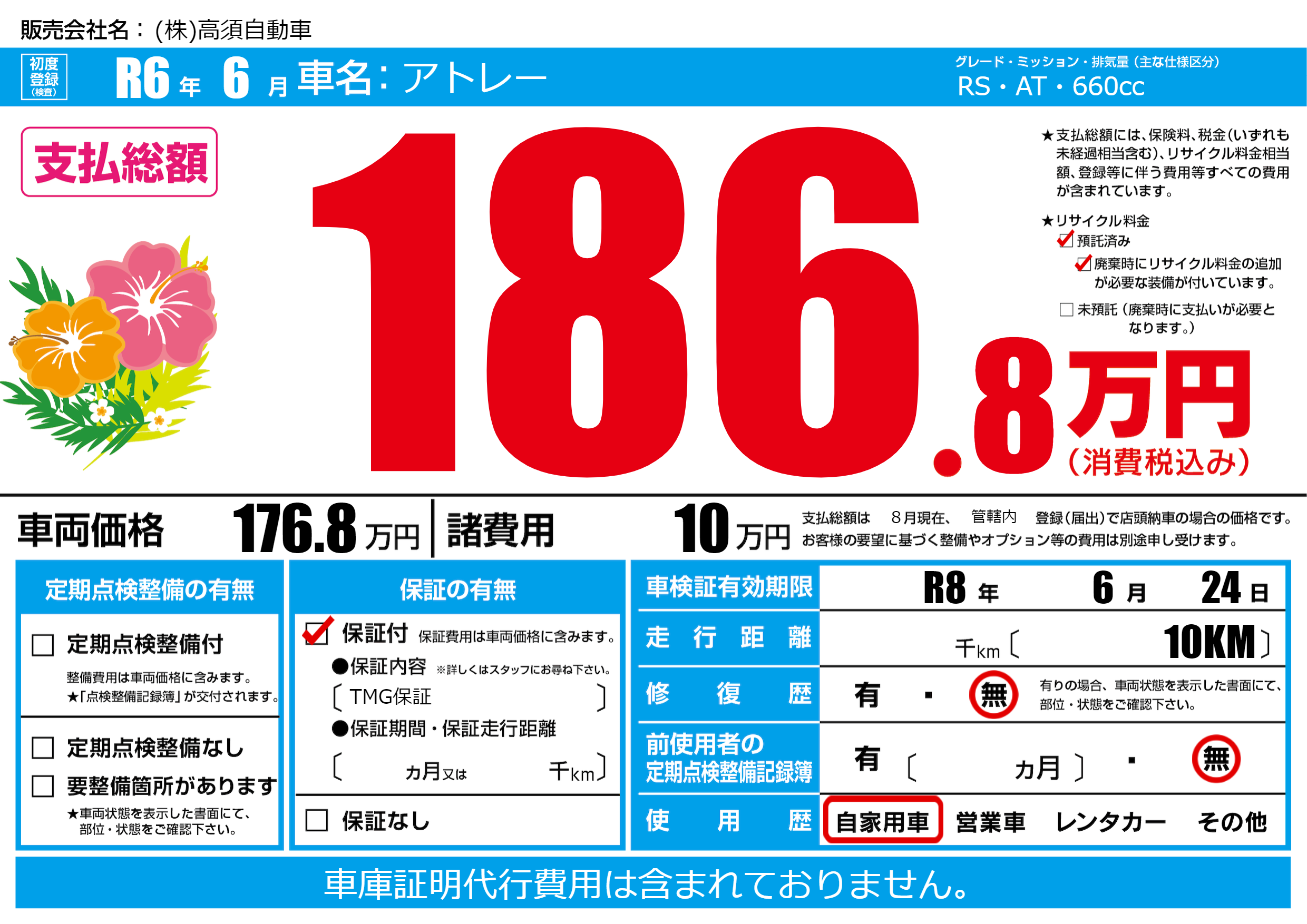 | 走行キロ | - | 初年度登録 | R6年6月 |