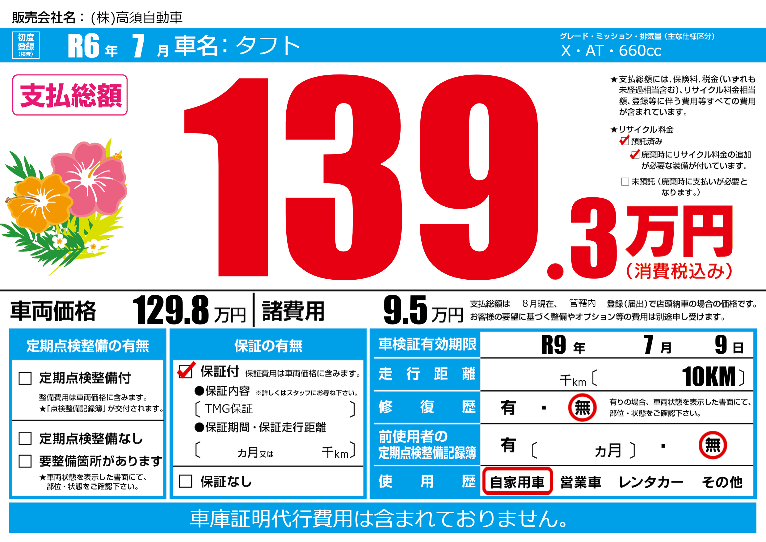 | 走行キロ | - | 初年度登録 | R6年7月 |