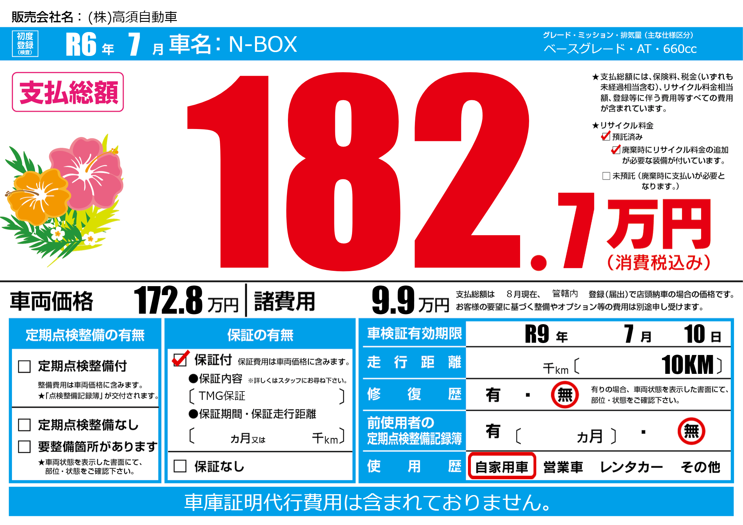 | 車名 | N-BOX | グレード ミッション 排気量 |