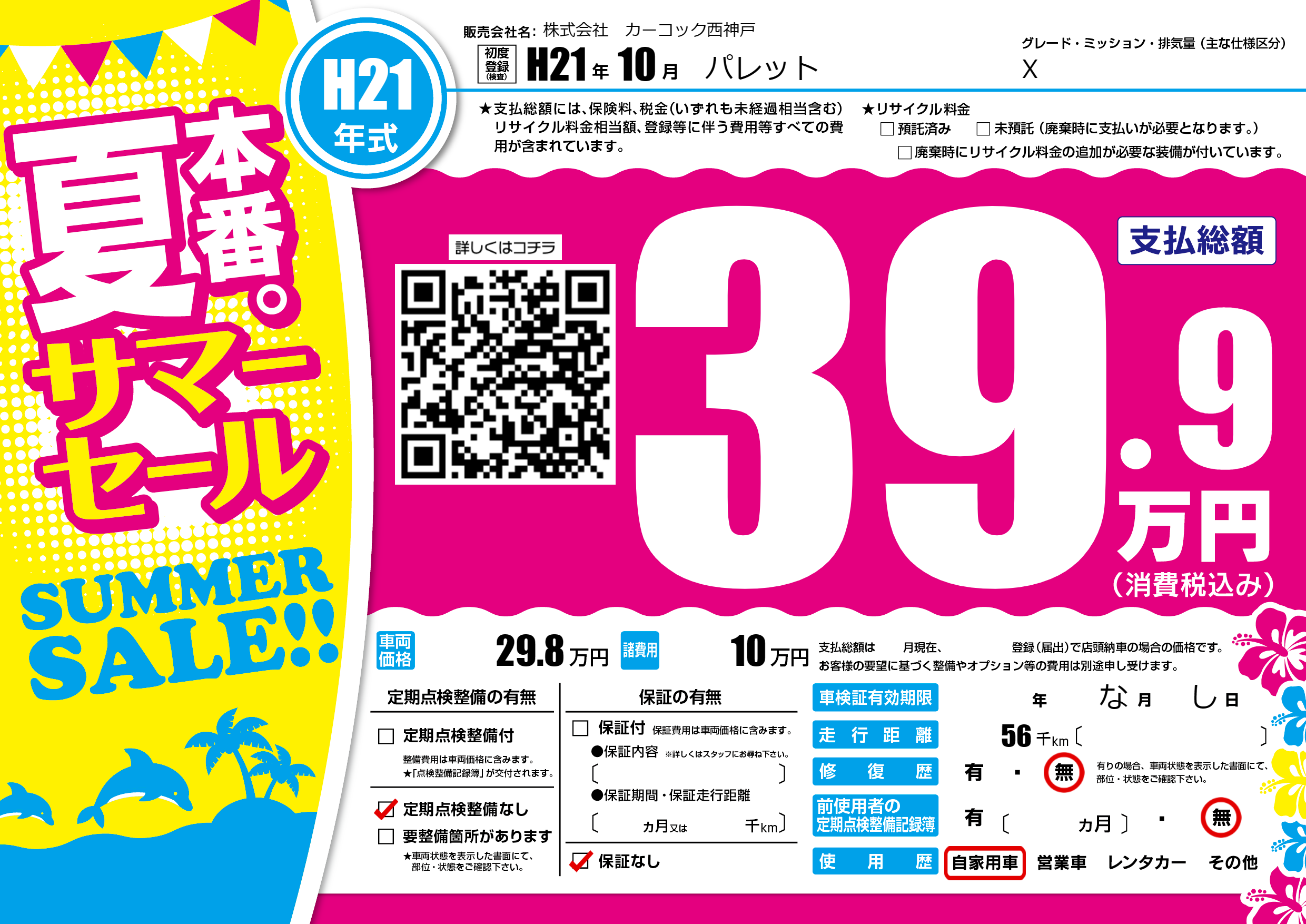 | 走行キロ | 5.6万km | 初年度登録 | H21年10月 |