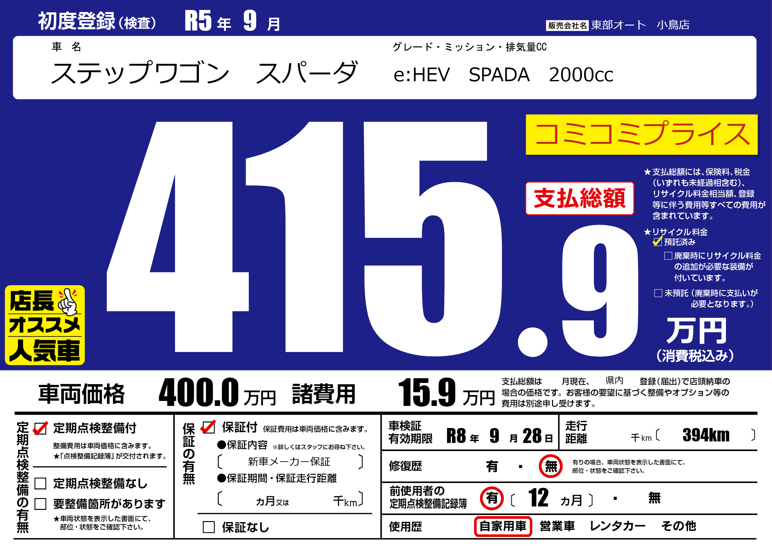| 車検制限 | R8年 9月 28日 | ||