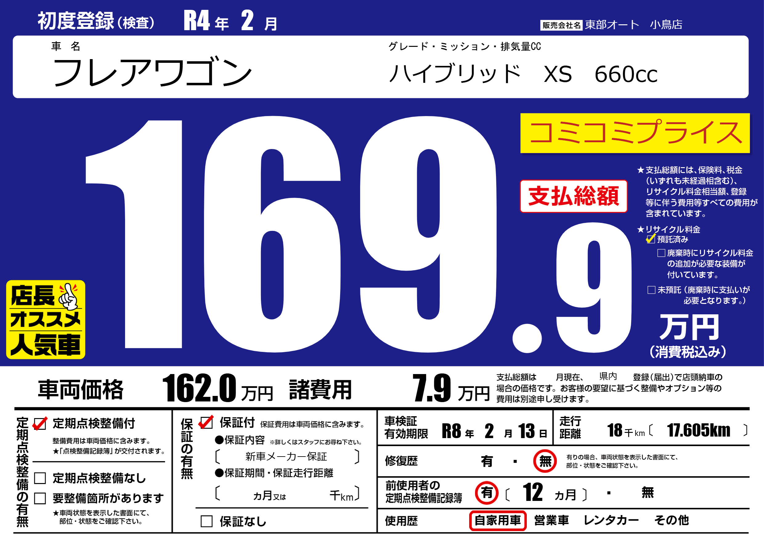 | 車検制限 | R8年 2月 13日 | ||