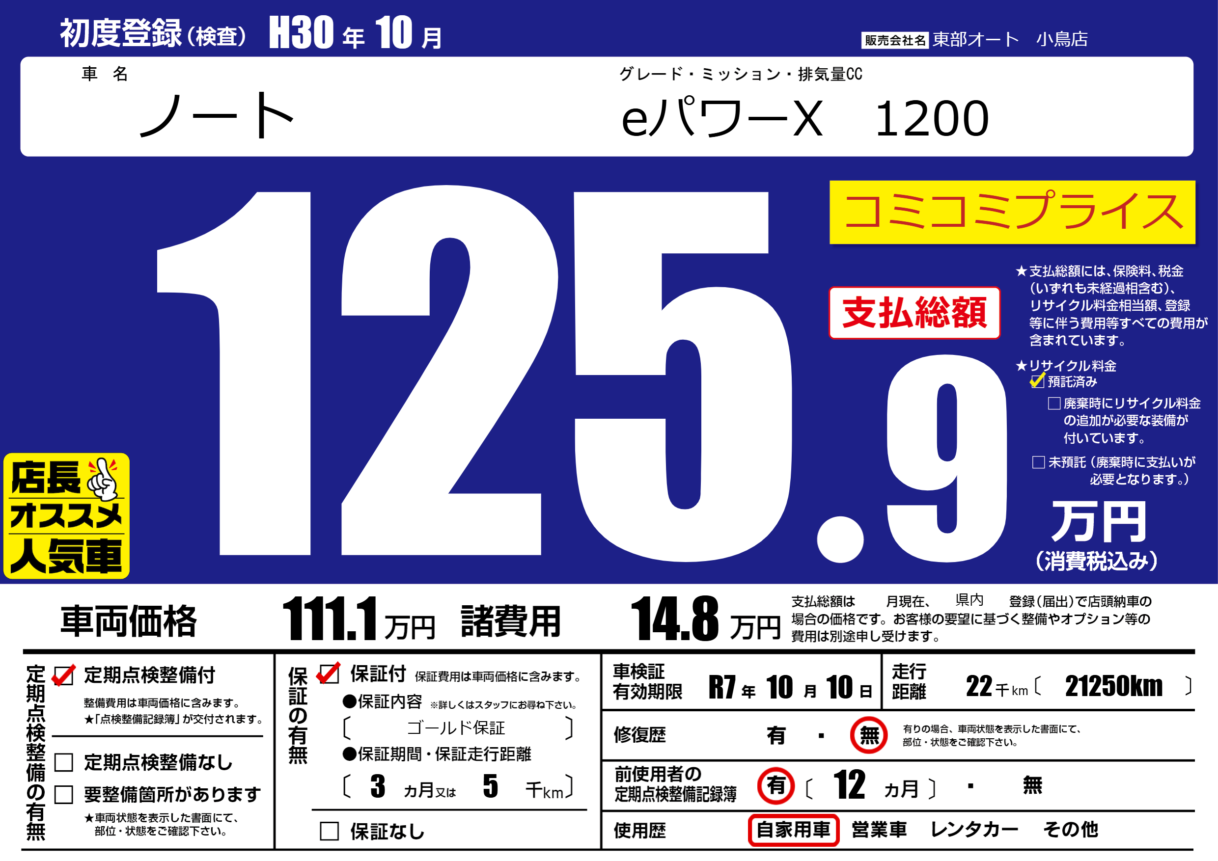 | 定期点検整備 | 定期点検整備あり | ||