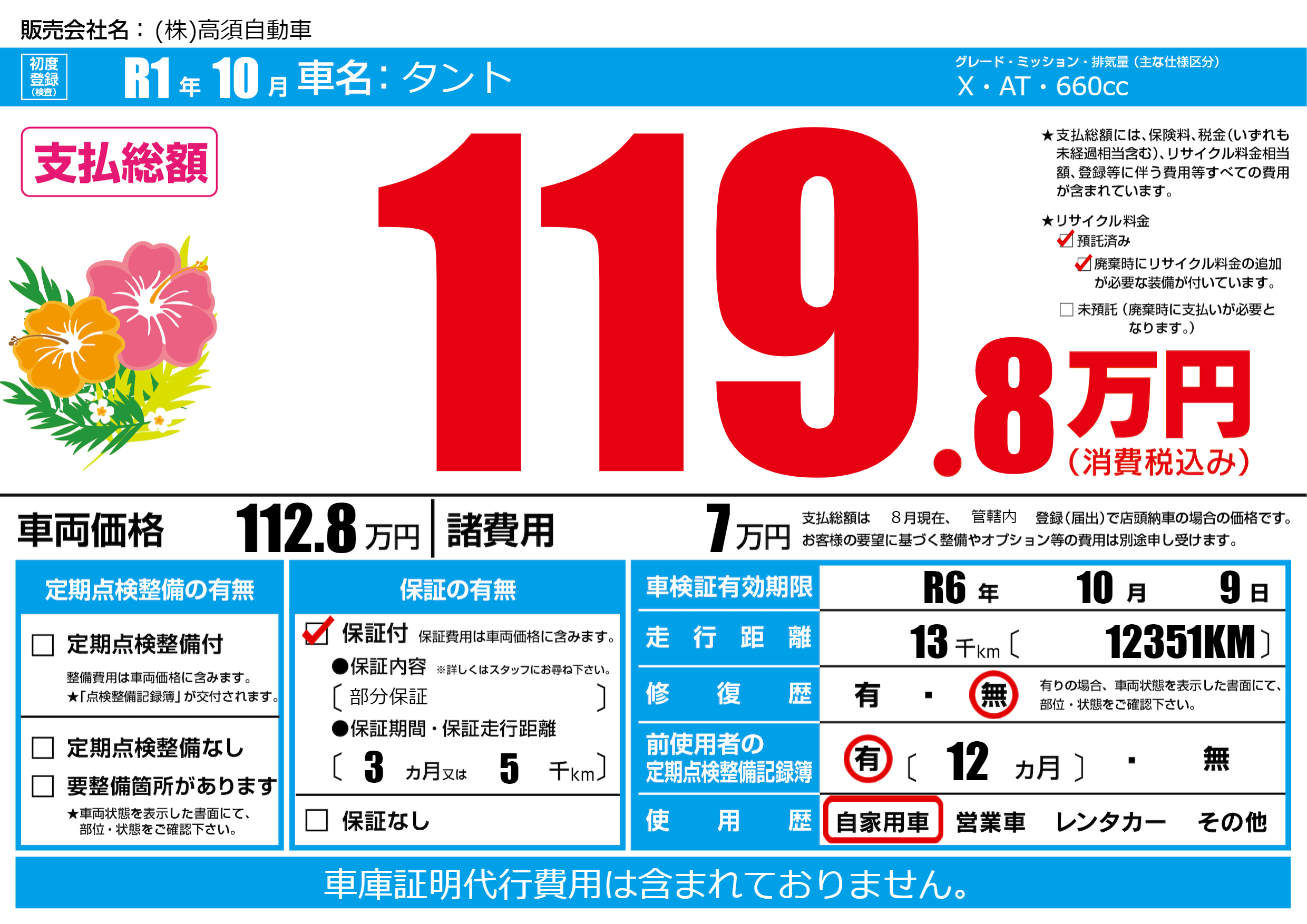 | 走行キロ | 1.3万km | 初年度登録 | R1年10月 |