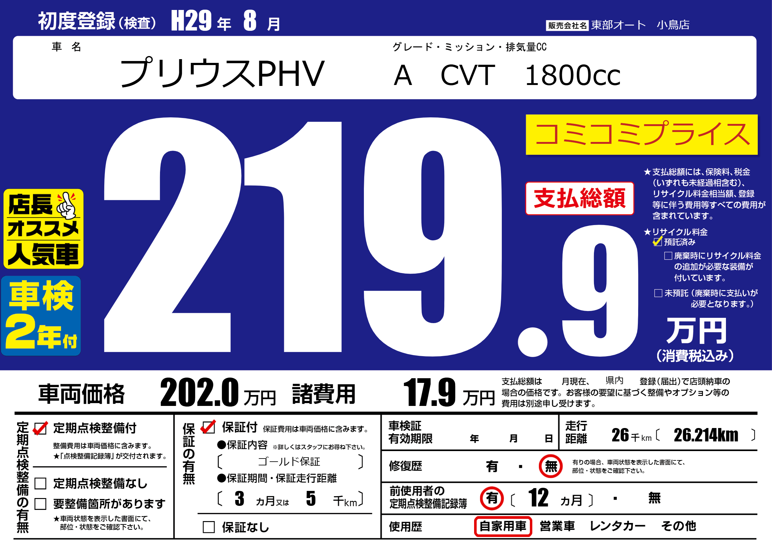 | 初年度登録 | H29年8月 | ||