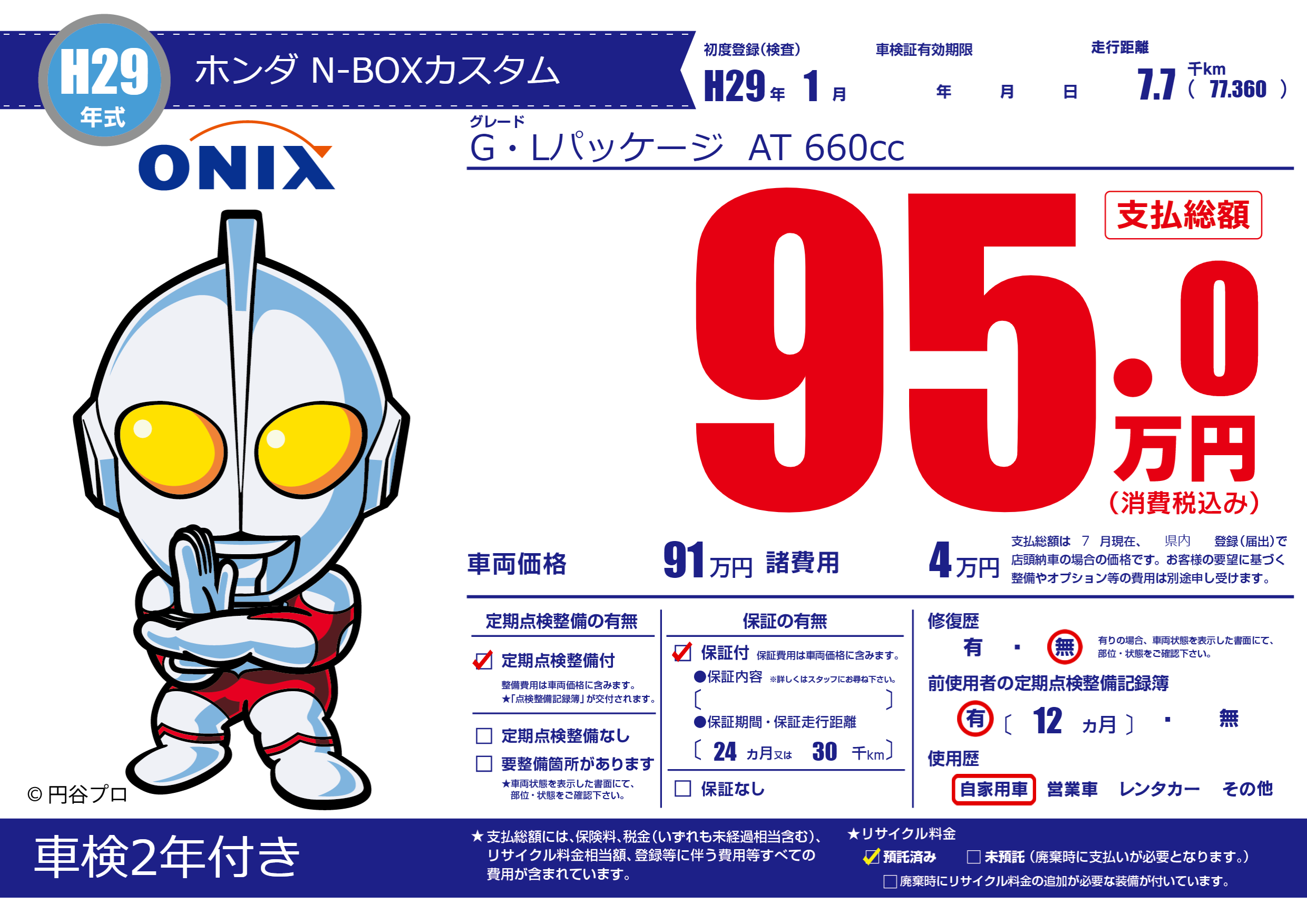 | 車名 | ホンダ N-BOXカスタム | グレード ミッション 排気量 |