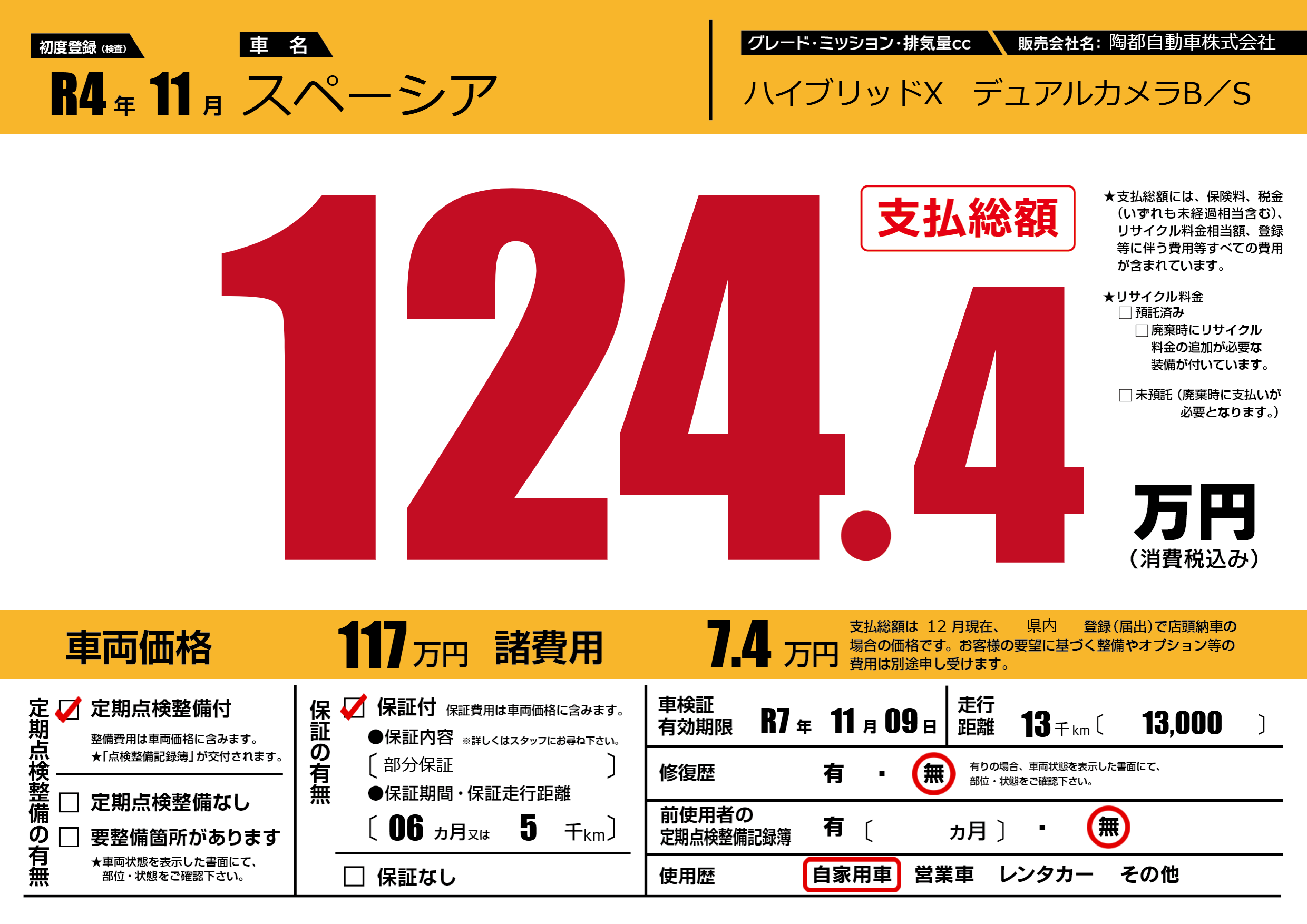 | 定期点検整備 | 定期点検整備あり | ||