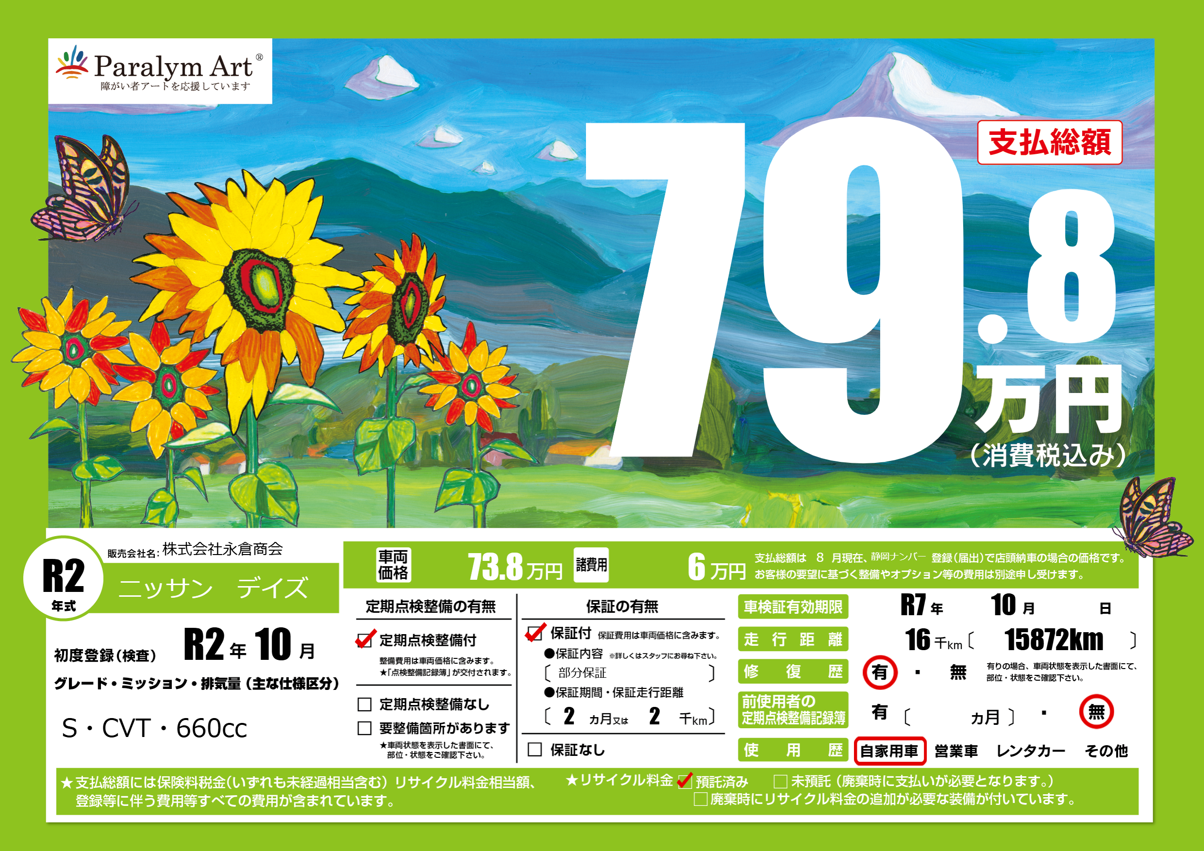 | 車名 | ニッサン デイズ | グレード ミッション 排気量 |