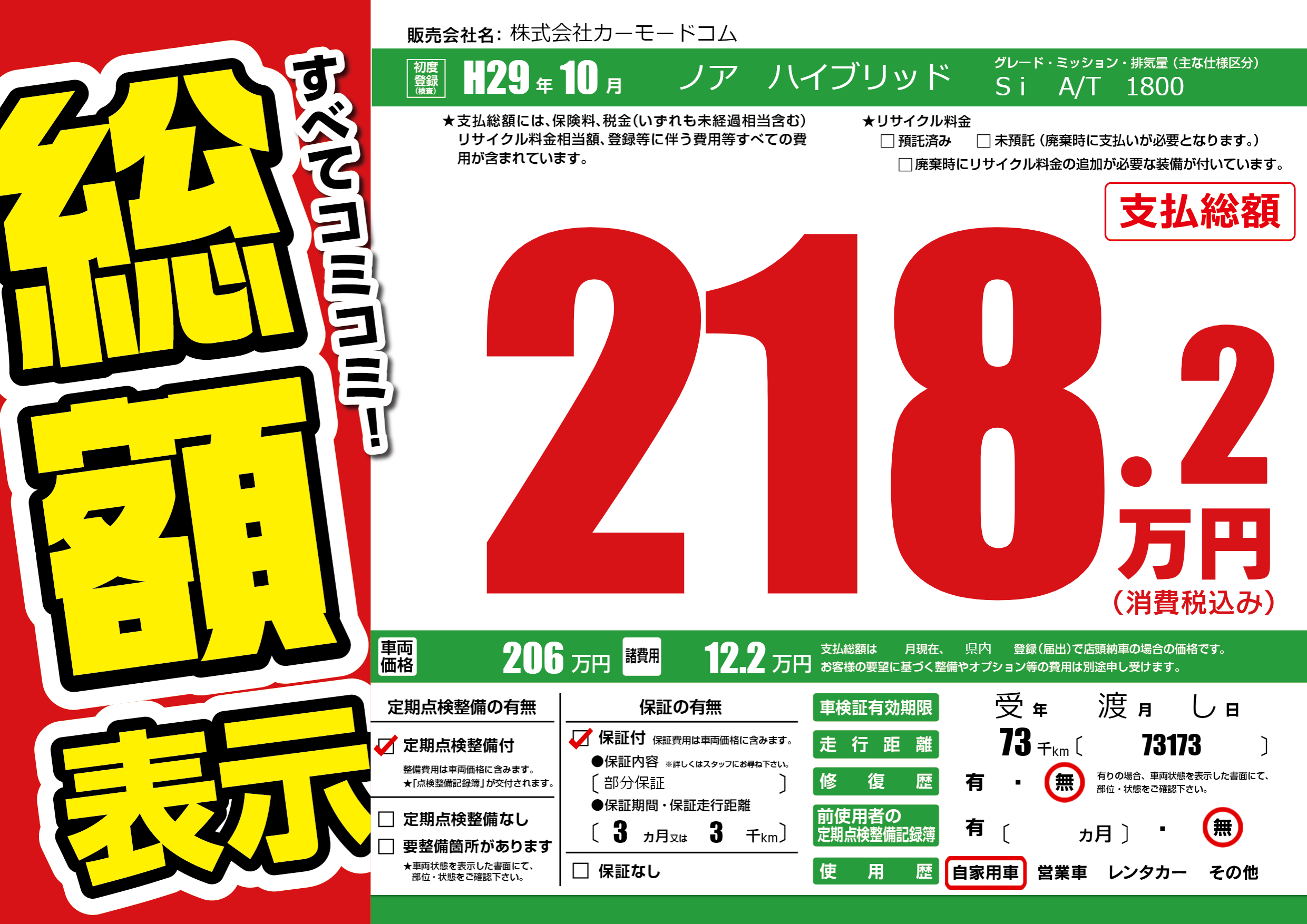 | 車名 | ノア ハイブリッド | グレード ミッション 排気量 |