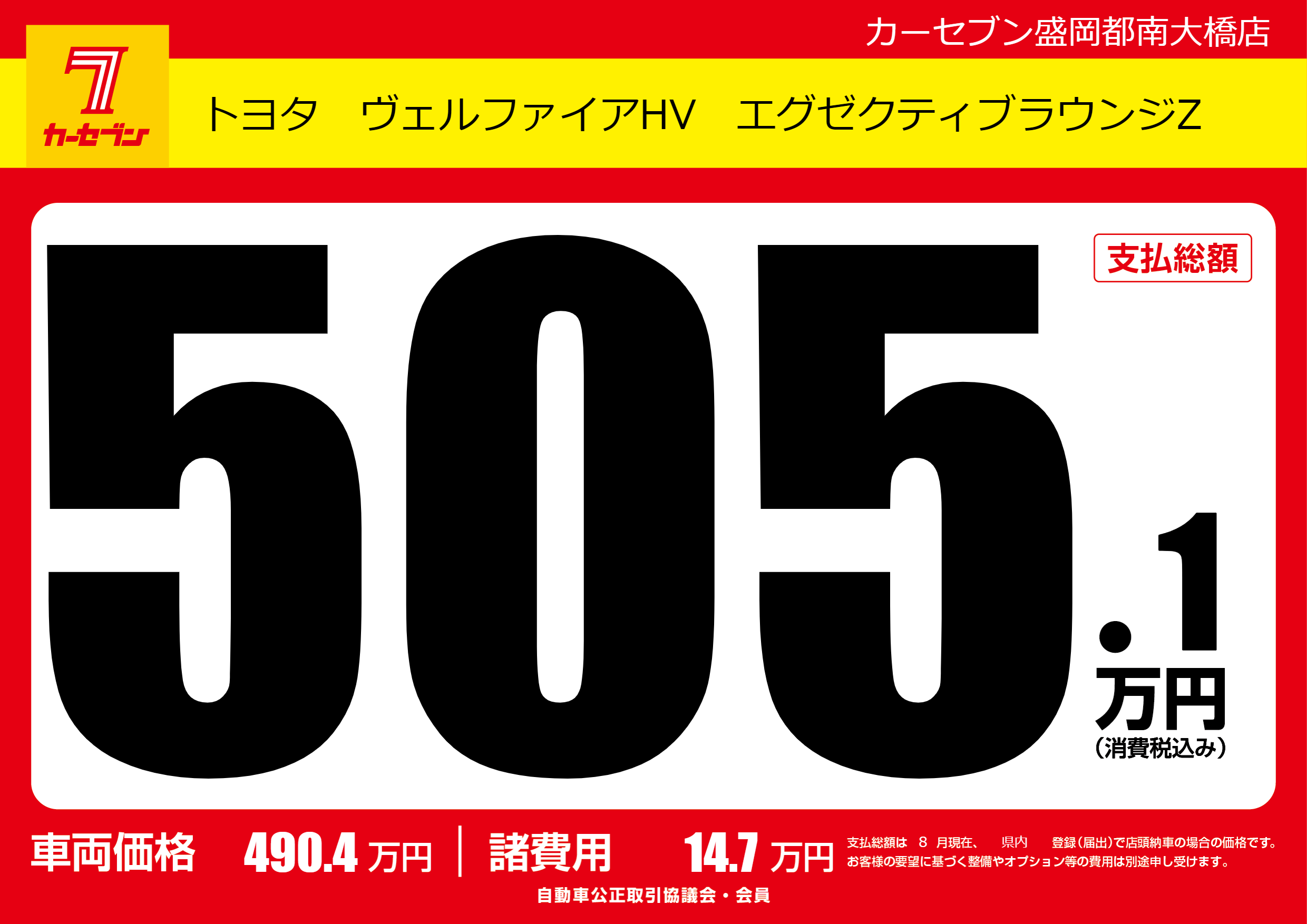 | 車名 | トヨタ ヴェルファイアHV エグゼクティブラウンジZ | グレード ミッション 排気量 |
