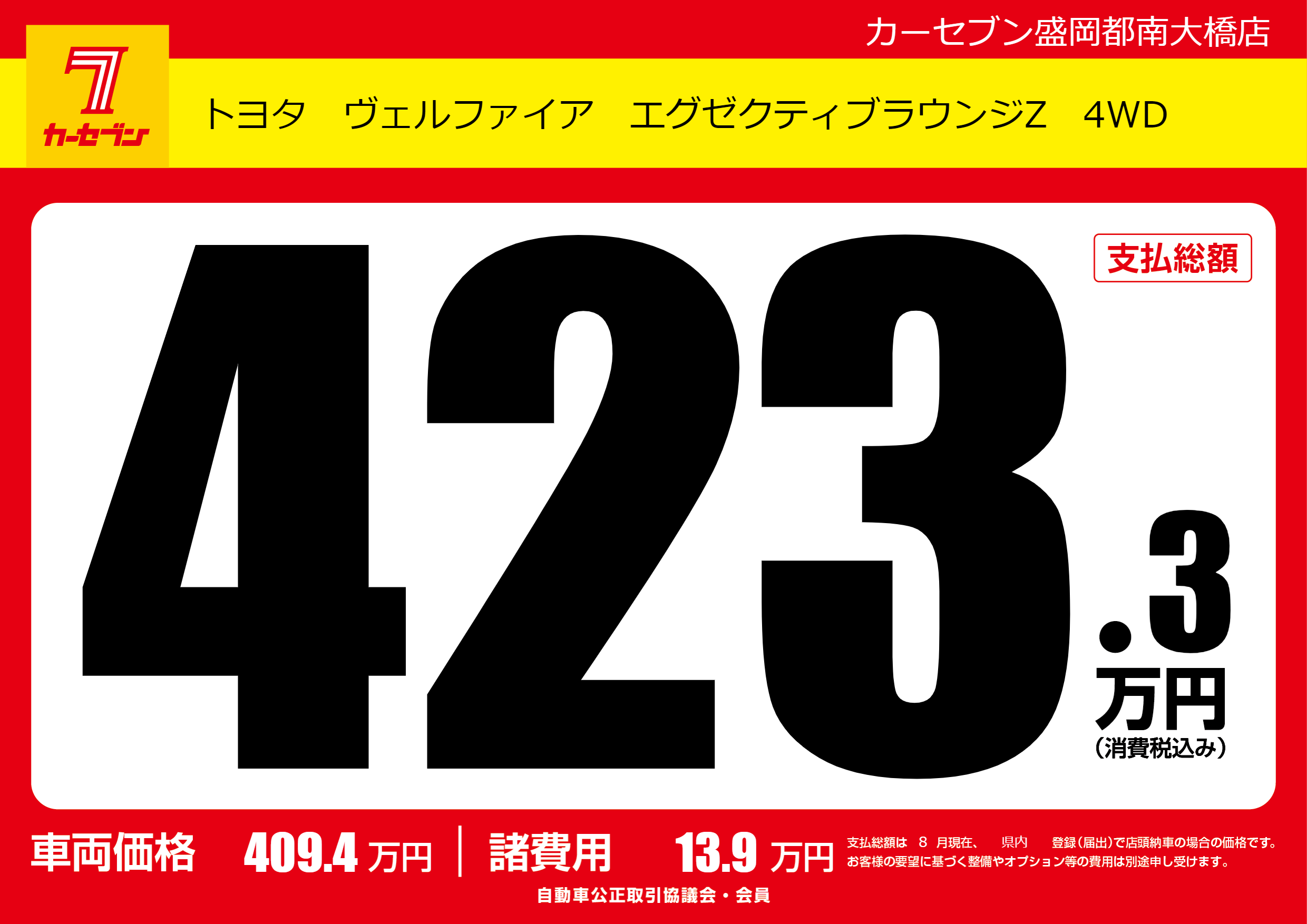 | 車名 | トヨタ ヴェルファイア エグゼクティブラウンジZ 4WD | グレード ミッション 排気量 |