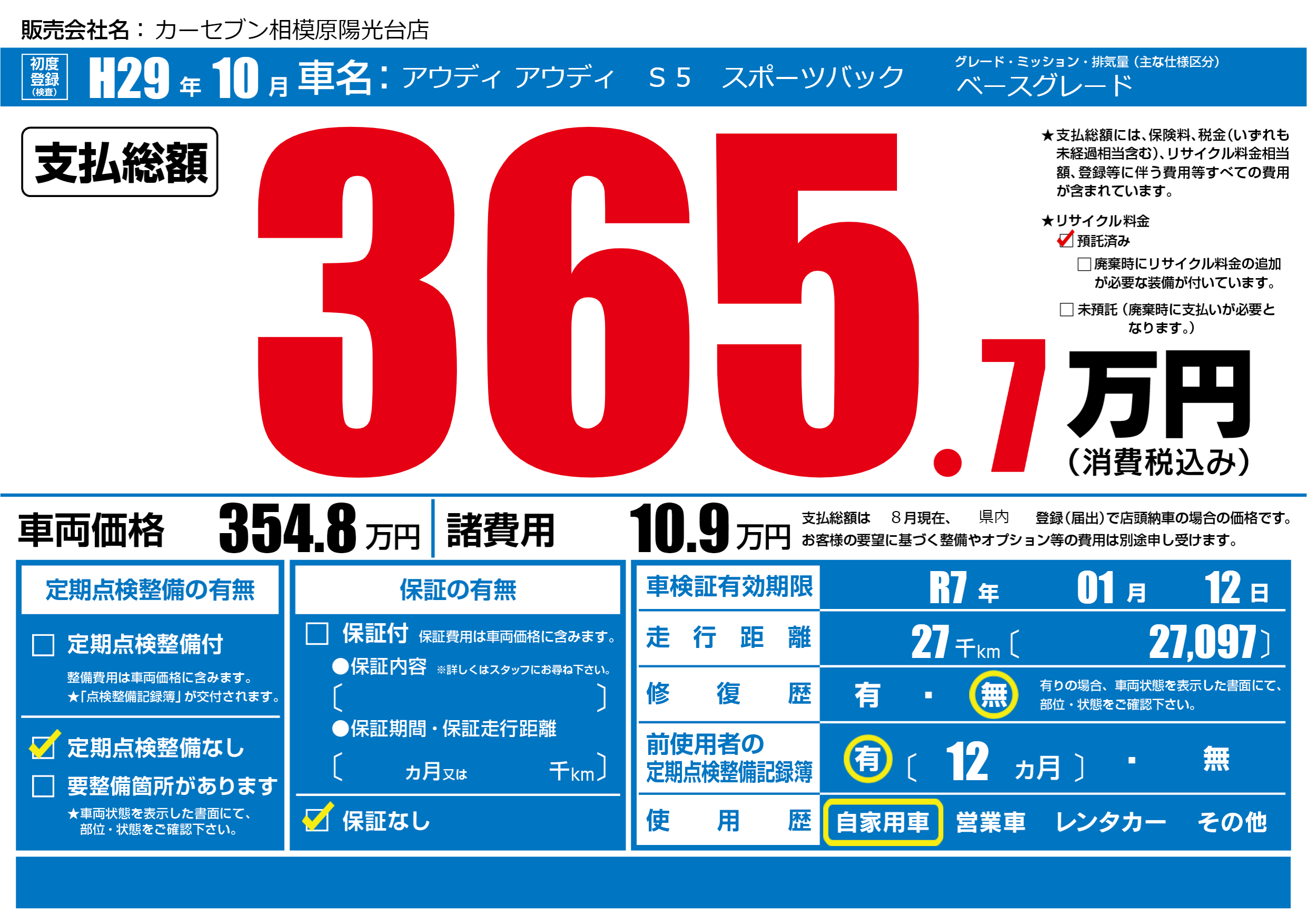 なし | 車検制限 | R7年01月12月 |