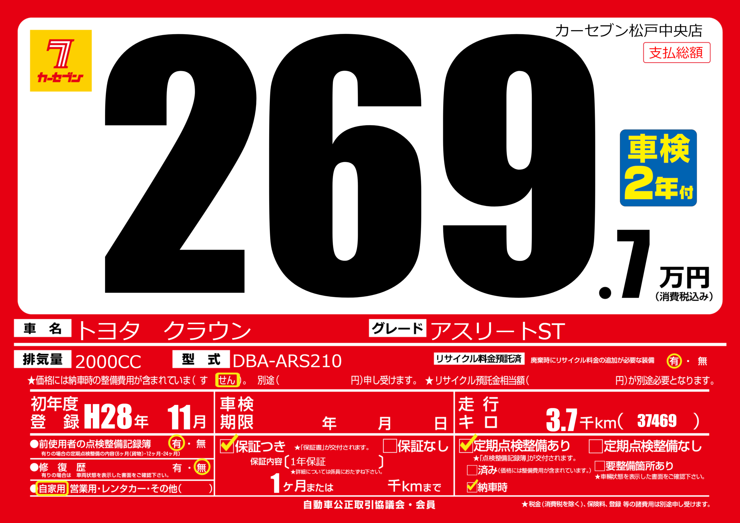 | 車名 | トヨタ クラウン | グレード ミッション 排気量 |